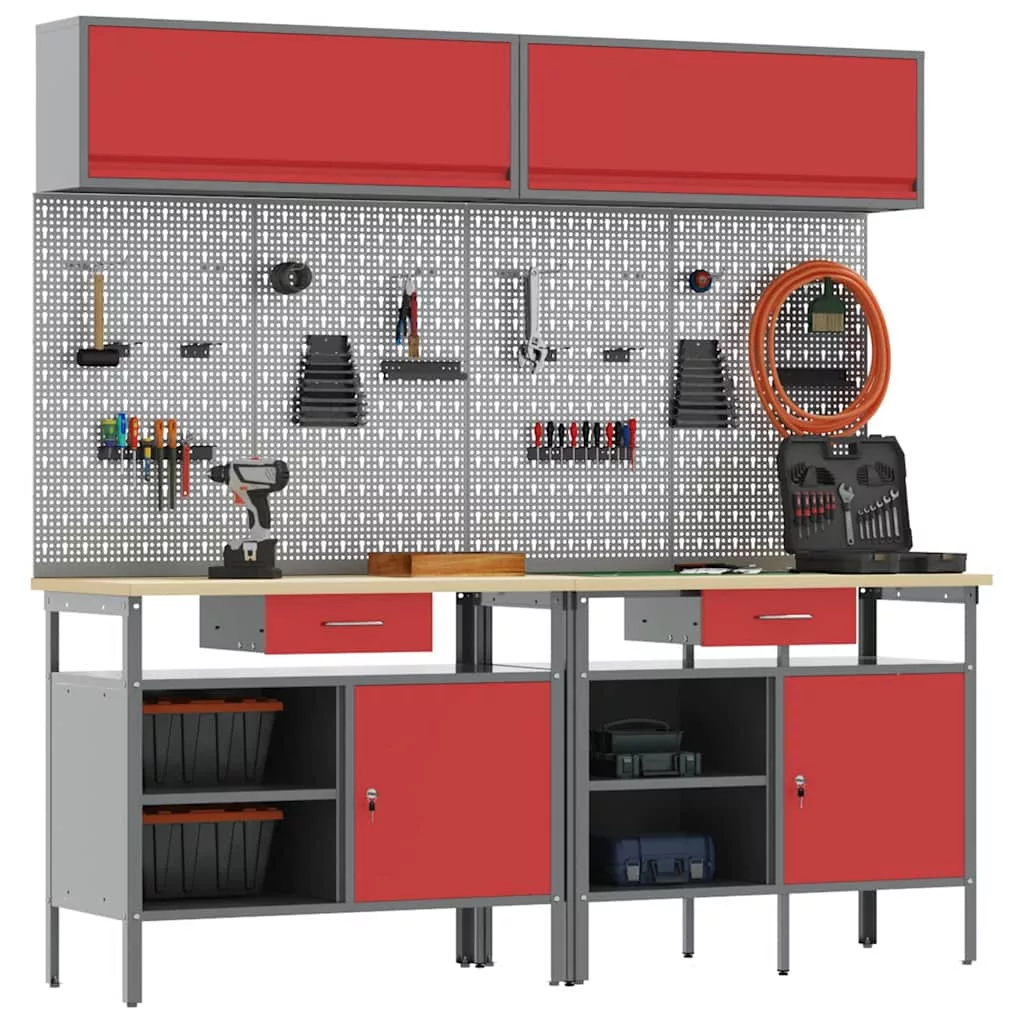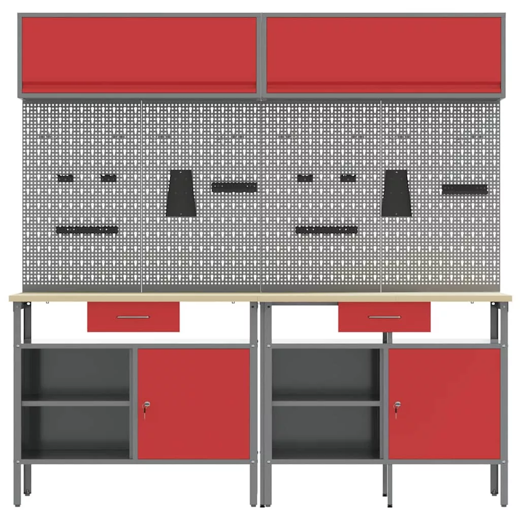 Munkapad készlet fiókkal polcokkal tárolóval 8 pcs Piros Acél