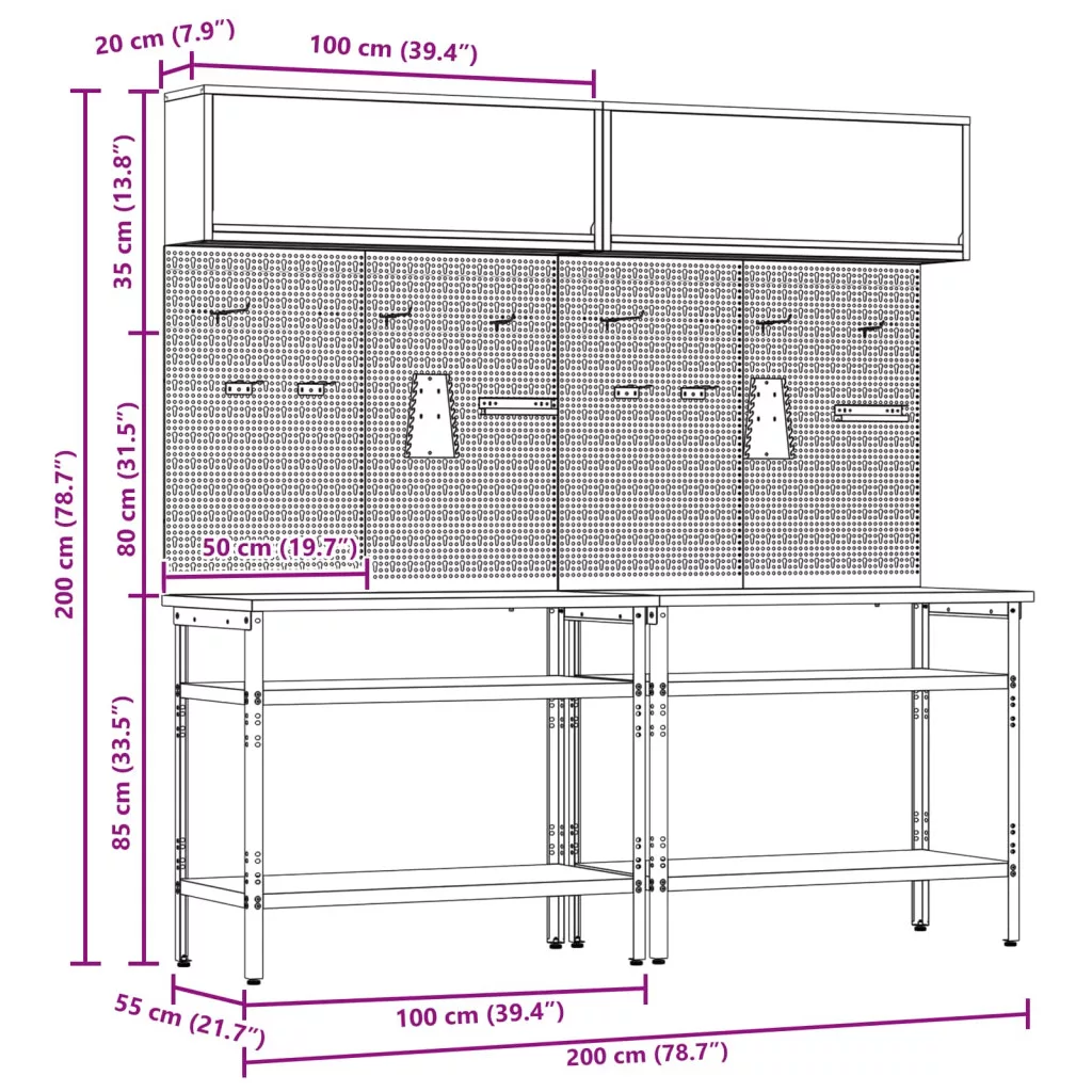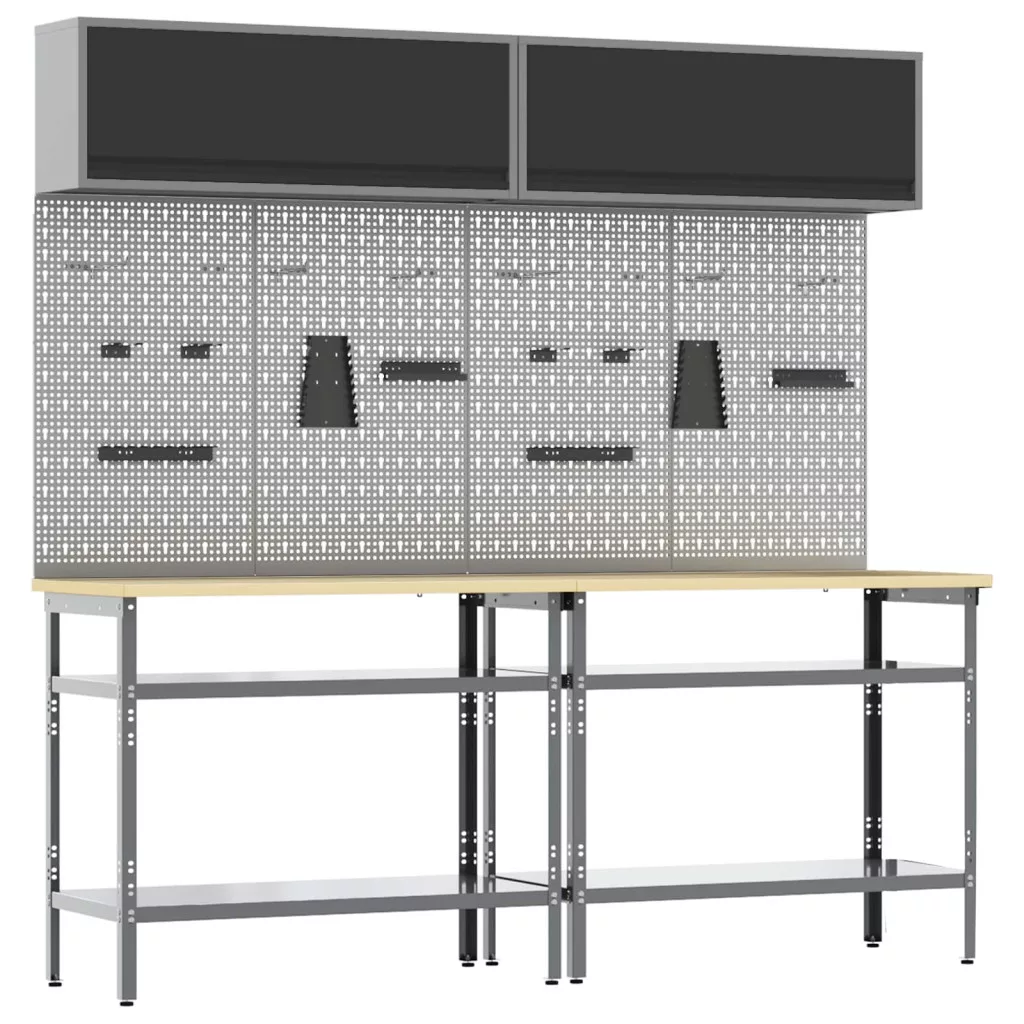 Munkapad készlet polcokkal tárolóval 8 pcs Szürke Acél