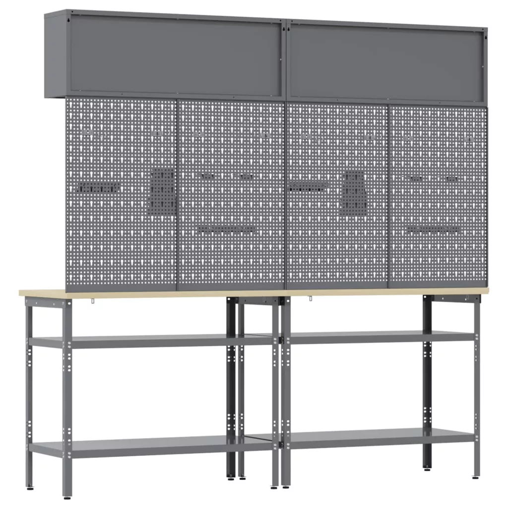 Munkapad készlet polcokkal tárolóval 8 pcs Szürke Porszórt acél