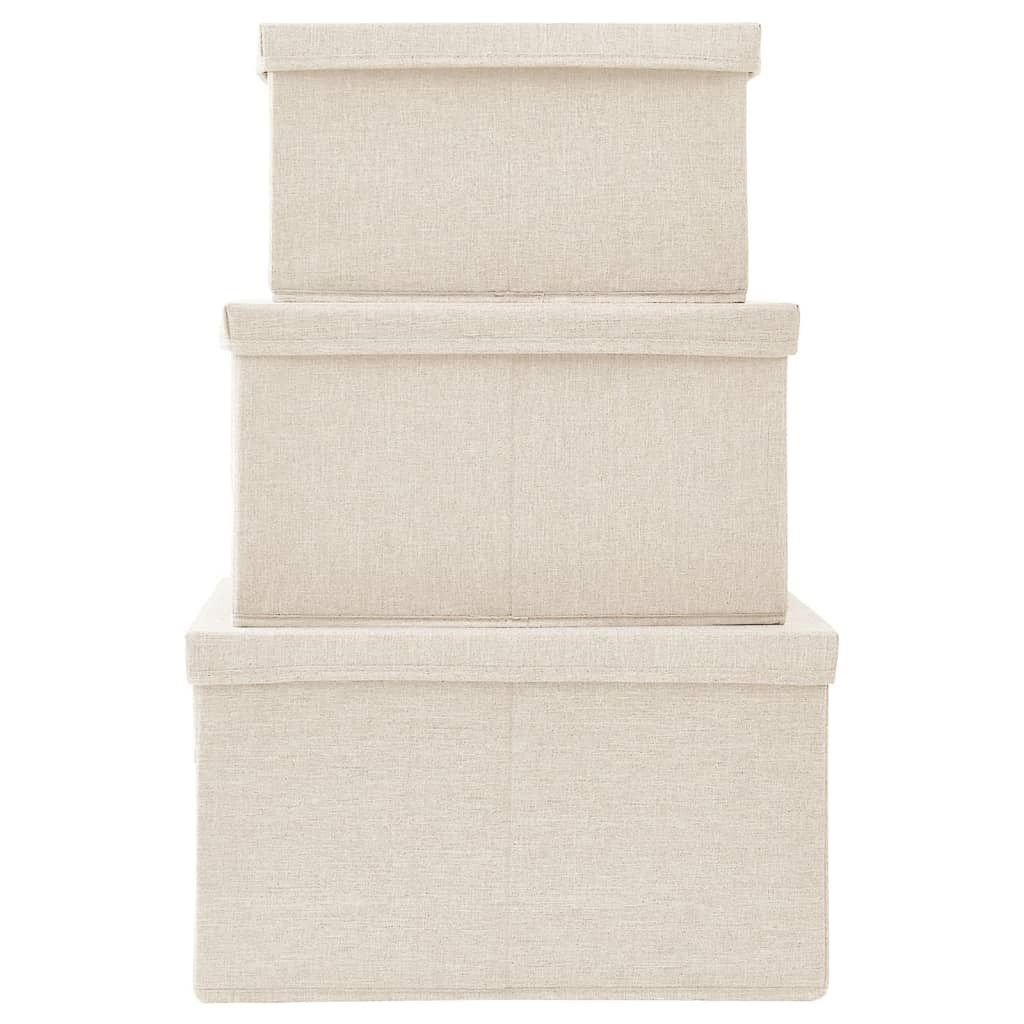 3 db krémszínű szövet rakásolható tárolódoboz