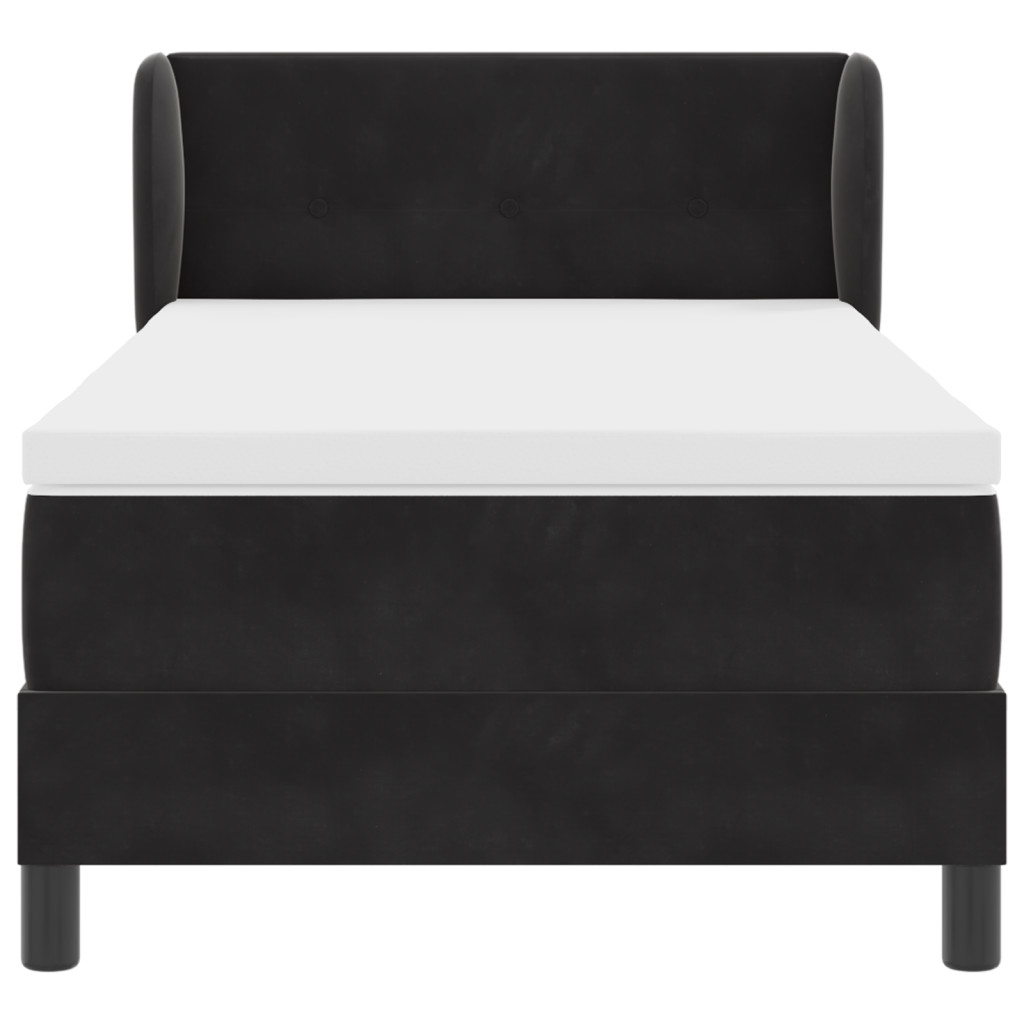 Boxspring Ágy, Matracot Tartalmaz, Fekete, 90x190 cm, Bársony
