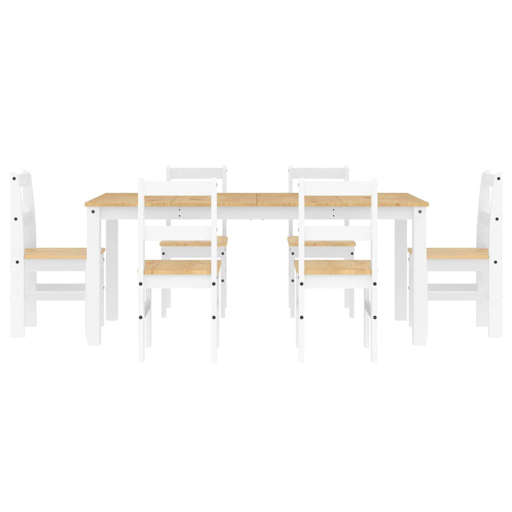 Panama 7 részes fehér tömör fenyőfa étkezőgarnitúra