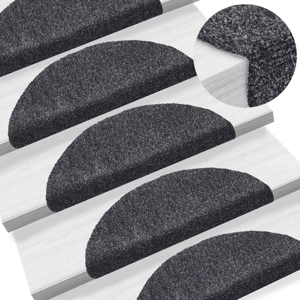 20 db öntapadós lépcsőszőnyeg, 56 x 17 x 3 cm, sötétszürke, félkör alakú