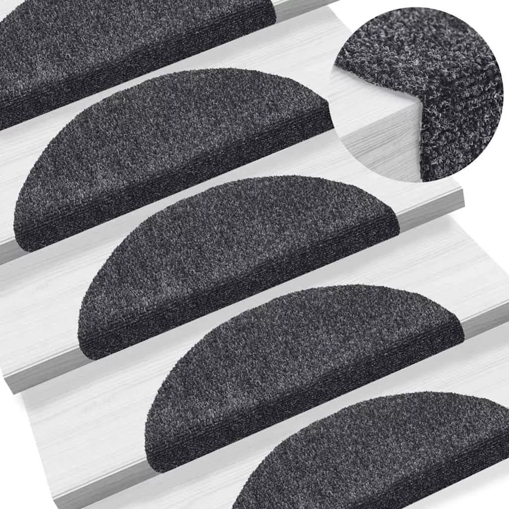 30 db öntapadós lépcsőszőnyeg, 56 x 17 x 3 cm, sötétszürke, félkör alakú