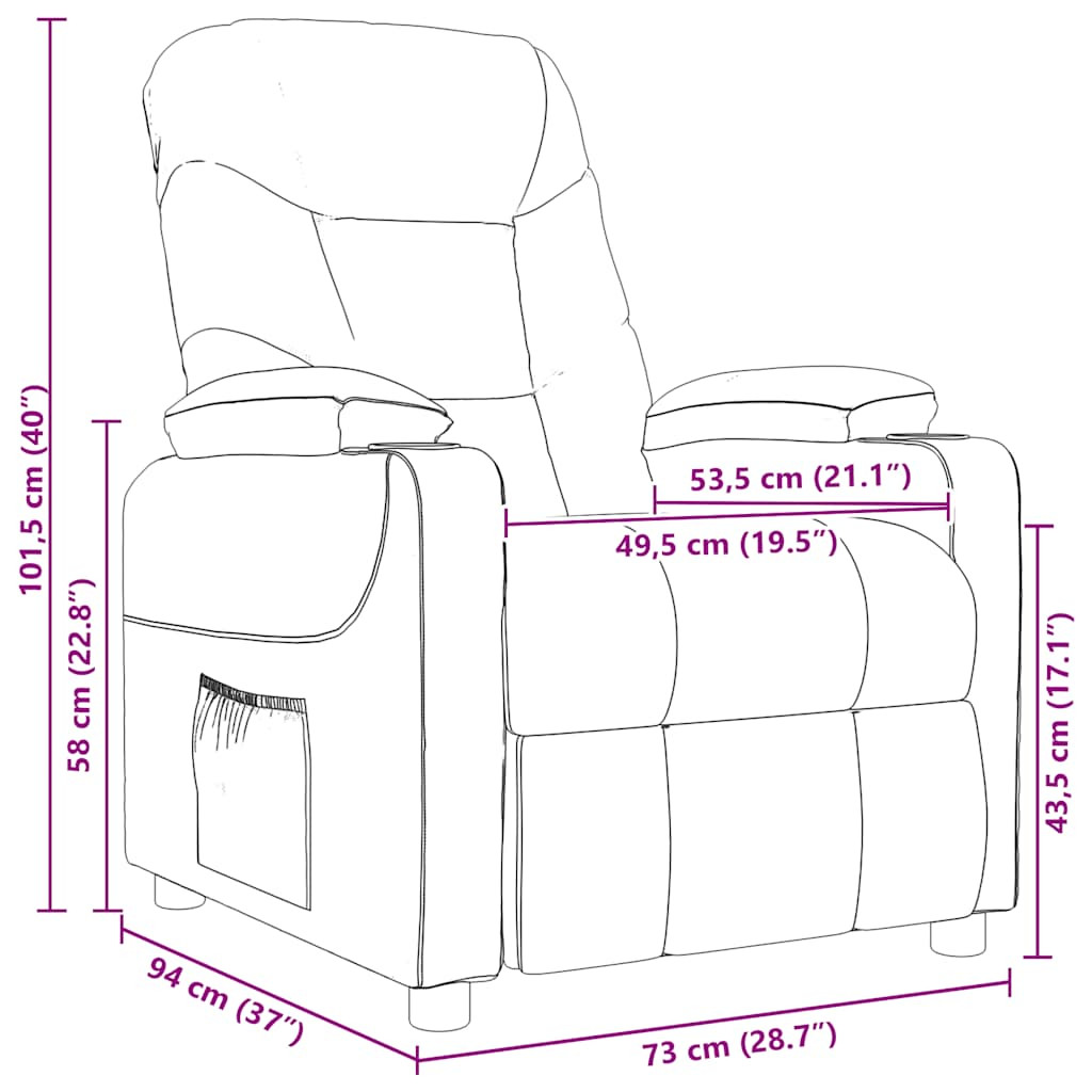 Dőljön hátra, és engedje el magát ebben a rendkívül kényelmes masszázsfotelben! Kézi dönthető funkció: A dönthető fotelt kifejezetten 3 dőlésszöggel tervezték, így a háttámlát és a lábtámlát kézzel állíthatja be saját kényelmének megfelelően.Rezgő funkció: A 6 masszázspont célzottabb masszást biztosít. Emellett a mellékelt kézi vezérlővel kiválaszthatja a különböző masszázsprogramokat. A masszázs funkciót az USB csatlakozó táplálja, de a hitelesített 5V-os USB tápforrást nem tartalmazza.Kényelmes ülésélmény: A vastagon párnázott ülés, a háttámla és a széles, szövetanyaggal borított kartámasz kellemes és meleg érzést kelt, így ülve átölelve érezheti magát. A szövet egyszerű és letisztult megjelenésű, valamint légáteresztő és tartós.Masszív és stabil váz: A fából és fémből készült váz erős szerkezetet és stabilitást biztosít. Ez a dönthető karosszék kényelmes és tartós. Ez a készülék 8 éves és idősebb gyermekek, valamint csökkent fizikai, érzékszervi vagy mentális képességekkel rendelkező személyek, vagy akiknek nincs tapasztalatuk és ismeretük az eszköz használatáról, számára használható, amennyiben megfelelő felügyeletet kaptak, vagy utasítást kaptak az eszköz biztonságos használatáról, és megértették a kapcsolódó veszélyeket. A gyermekek nem játszhatnak a készülékkel. A tisztítást és karbantartást a gyermekek nem végezhetik felügyelet nélkül. Csak biztonságos extra alacsony feszültséggel szabad táplálni, ami megfelel a készüléken található jelölésnek. Csatlakoztassa az eszköz USB csatlakozóját a tápegység USB csatlakozójához. Kérjük, csak tanúsított DC 5V bemenetet használjon. Magasabb feszültség túlmelegedést okozhat, és károsíthatja az eszközt, valamint túlmelegedés és tűz kockázatát jelentheti.