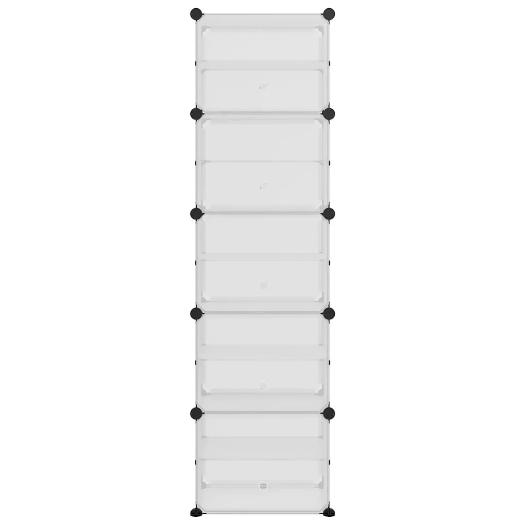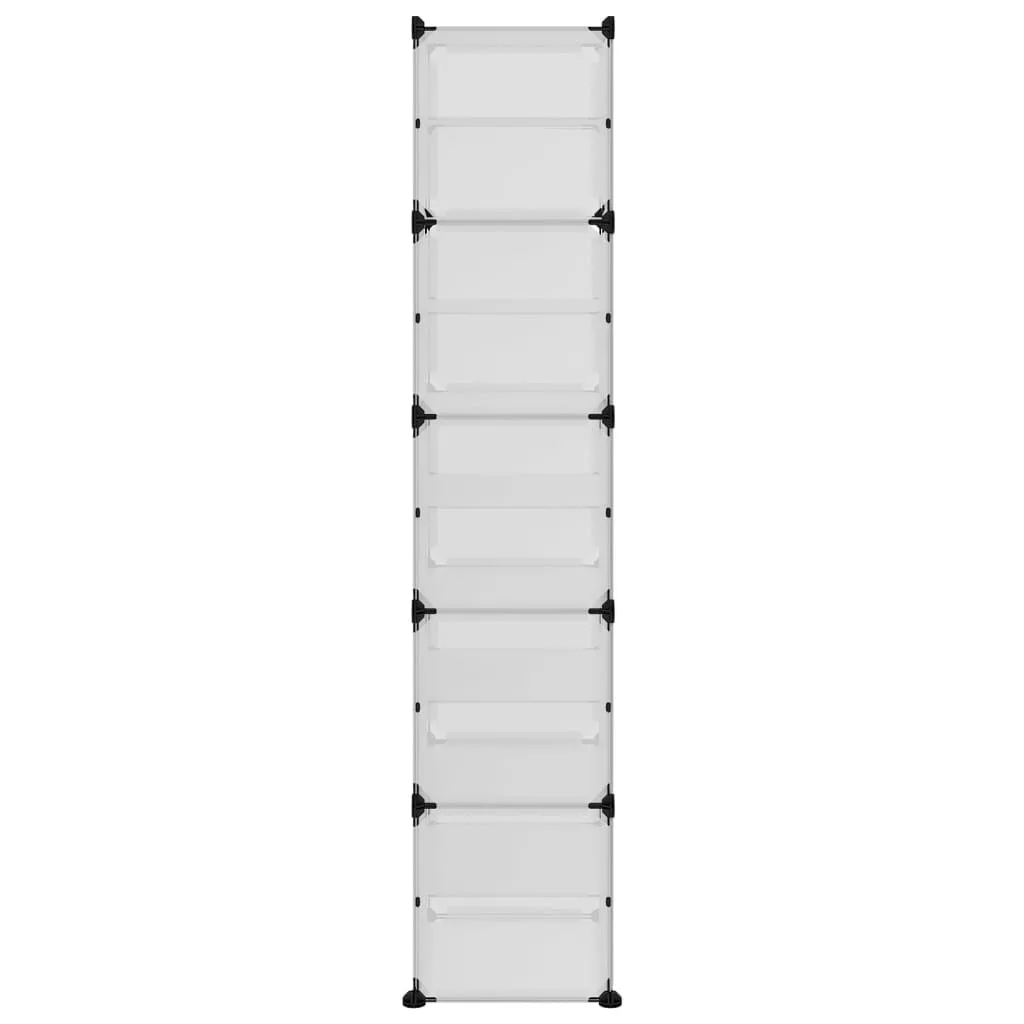 Ez a cipőtartó nagyszerű tárolási megoldást kínál kedvenc lábbelijei és egyéb kiegészítői számára. Praktikus anyag: A cipőszervező polipropilén műanyag panelekből készült, amelyek vízállóak, és kevés karbantartást igényelnek.Erős és stabil szerkezet: Az acél vázak erős szerkezetet és stabilitást biztosítanak.Felhasználóbarát kialakítás: A cipősszekrény kényelmesen összeszerelhető a mellékelt fakalapáccsal. Használaton kívül a helytakarékosság érdekében a panelek könnyen szétválaszthatók, és egymásra rakhatók.Kiváló tároló: A cipőtároló egység bőséges tárolóhelye megkönnyíti holmija elrendezését.Széleskörű felhasználás: A nagy tárolóhelynek és az egyszerű kialakításnak köszönhetően a tárolóállvány kiváló tárolómegoldás otthon, a kollégiumban és az irodában. Megjegyzés:Egy-egy kocka maximális terhelhetősége 10 kg.