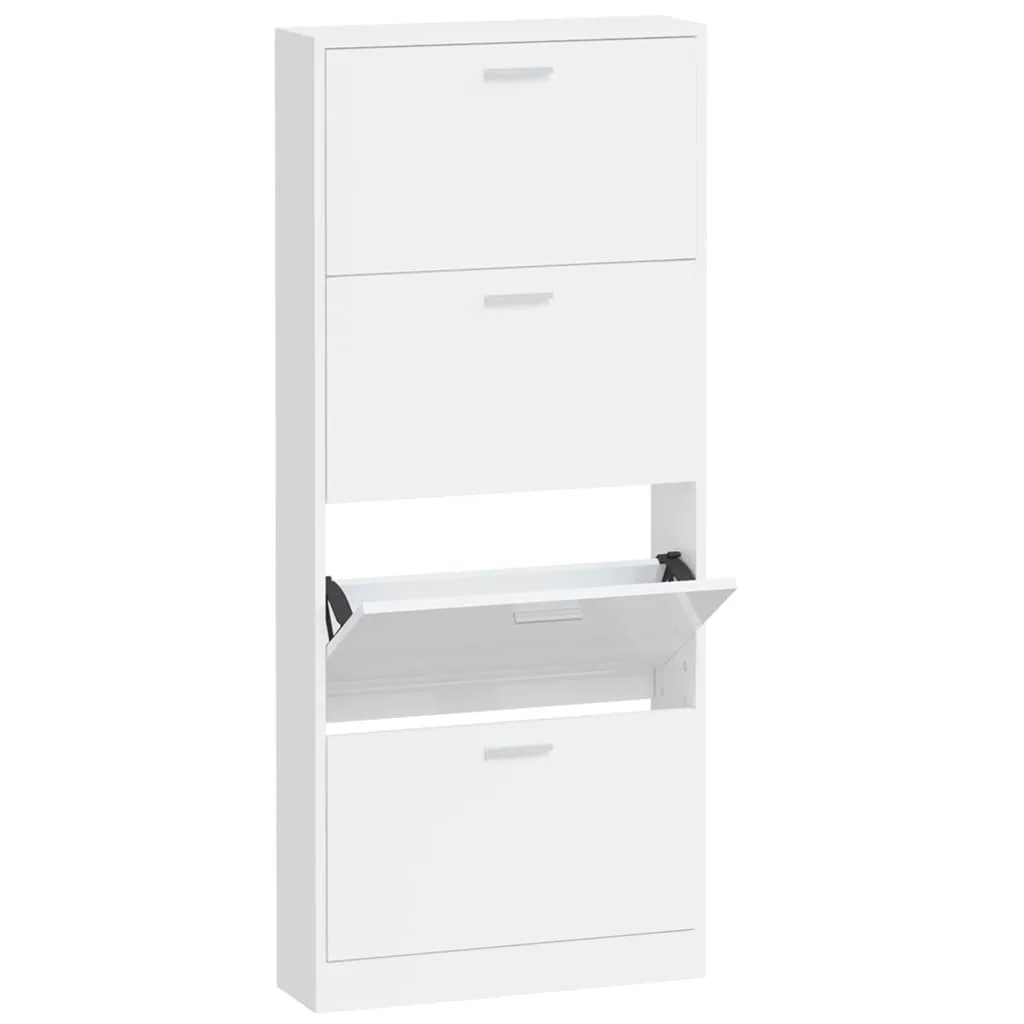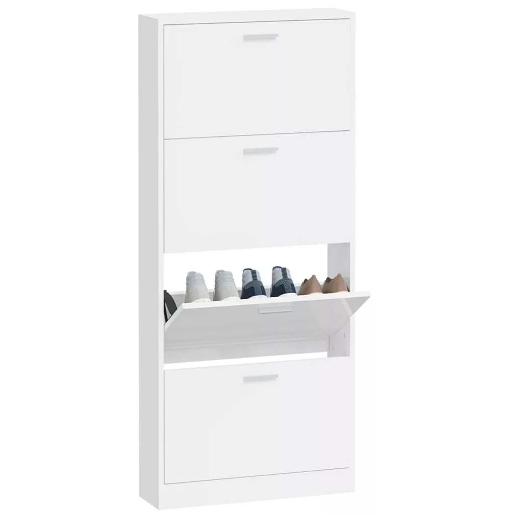 Ez a modern és stílusos kialakítású cipőszekrény kiváló bútor a cipők szervezett tárolásához. Alkalmas bejárathoz, folyosóra, nappaliba, hálószobába vagy bárhova, ahova helyezni szeretné. Tartós anyag: A szerelt fa kivételes minőségű, sima felületű, szilárd, stabil, és ellenáll a nedvességnek.Bőséges tárolóhely: Ez a cipőtartó 4 fiókkal rendelkezik, amelyek elegendő helyet biztosítanak a cipők kéznél tartásához és jól rendezetten tartásához.Lehúzható fiókos kialakítás: A lehúzható fiókos kialakításnak köszönhetően ez a cipőtároló szekrény könnyen nyitható és zárható. Megjegyzés:Az egyszerű összeszerelés érdekében minden termékhez mellékelünk összeszerelési útmutatót. Figyelem:A dőlés megakadályozása érdekében a terméket a mellékelt tartóelem segítségével rögzíteni kell a falhoz