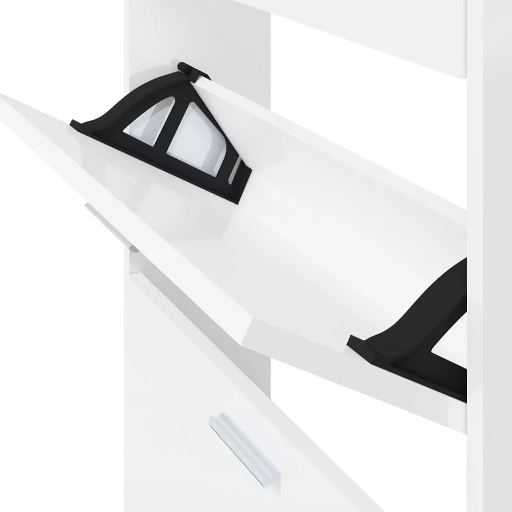 magasfényű fehér szerelt fa cipőszekrény 59x17x150 cm