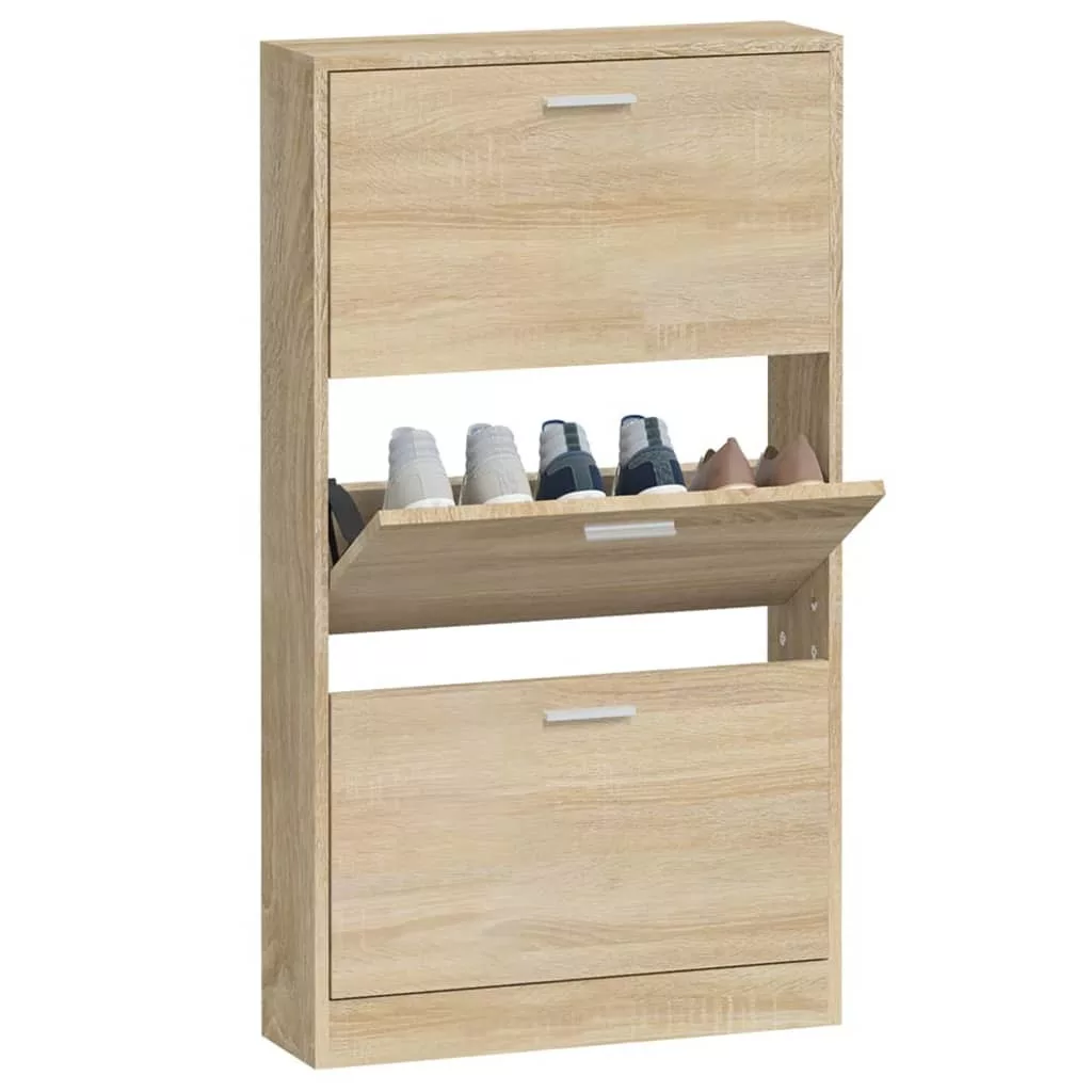 Ez a modern és stílusos kialakítású cipőszekrény kiváló bútor a cipők szervezett tárolásához. Alkalmas bejárathoz, folyosóra, nappaliba, hálószobába vagy bárhova, ahova helyezni szeretné. Tartós anyag: A szerelt fa kivételes minőségű, sima felületű, szilárd, stabil, és ellenáll a nedvességnek.Bőséges tárolóhely: Ez a cipőtartó 3 fiókkal rendelkezik, amelyek elegendő helyet biztosítanak a cipők kéznél tartásához és jól rendezetten tartásához.Lehúzható fiókos kialakítás: A lehúzható fiókos kialakításnak köszönhetően ez a cipőtároló szekrény könnyen nyitható és zárható. Megjegyzés:Az egyszerű összeszerelés érdekében minden termékhez mellékelünk összeszerelési útmutatót. Figyelem:A dőlés megakadályozása érdekében a terméket a mellékelt tartóelem segítségével rögzíteni kell a falhoz