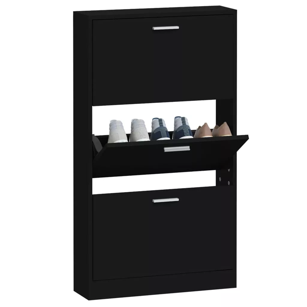 Ez a modern és stílusos kialakítású cipőszekrény kiváló bútor a cipők szervezett tárolásához. Alkalmas bejárathoz, folyosóra, nappaliba, hálószobába vagy bárhova, ahova helyezni szeretné. Tartós anyag: A szerelt fa kivételes minőségű, sima felületű, szilárd, stabil, és ellenáll a nedvességnek.Bőséges tárolóhely: Ez a cipőtartó 3 fiókkal rendelkezik, amelyek elegendő helyet biztosítanak a cipők kéznél tartásához és jól rendezetten tartásához.Lehúzható fiókos kialakítás: A lehúzható fiókos kialakításnak köszönhetően ez a cipőtároló szekrény könnyen nyitható és zárható. Megjegyzés:Az egyszerű összeszerelés érdekében minden termékhez mellékelünk összeszerelési útmutatót. Figyelem:A dőlés megakadályozása érdekében a terméket a mellékelt tartóelem segítségével rögzíteni kell a falhoz