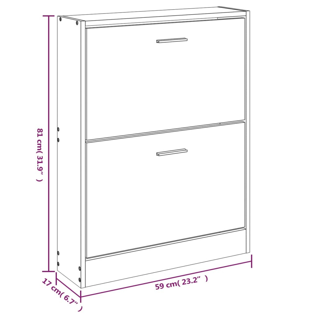 Ez a modern és stílusos kialakítású cipőszekrény kiváló bútor a cipők szervezett tárolásához. Alkalmas bejárathoz, folyosóra, nappaliba, hálószobába vagy bárhova, ahova helyezni szeretné. Tartós anyag: A szerelt fa kivételes minőségű, sima felületű, szilárd, stabil, és ellenáll a nedvességnek.Bőséges tárolóhely: Ez a cipőtartó 2 fiókkal rendelkezik, amelyek elegendő helyet biztosítanak a cipők kéznél tartásához és jól rendezetten tartásához.Lehúzható fiókos kialakítás: A lehúzható fiókos kialakításnak köszönhetően ez a cipőtároló szekrény könnyen nyitható és zárható. Megjegyzés:Az egyszerű összeszerelés érdekében minden termékhez mellékelünk összeszerelési útmutatót. Figyelem:A dőlés megakadályozása érdekében a terméket a mellékelt tartóelem segítségével rögzíteni kell a falhoz