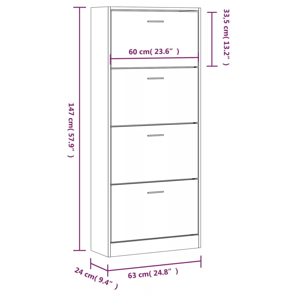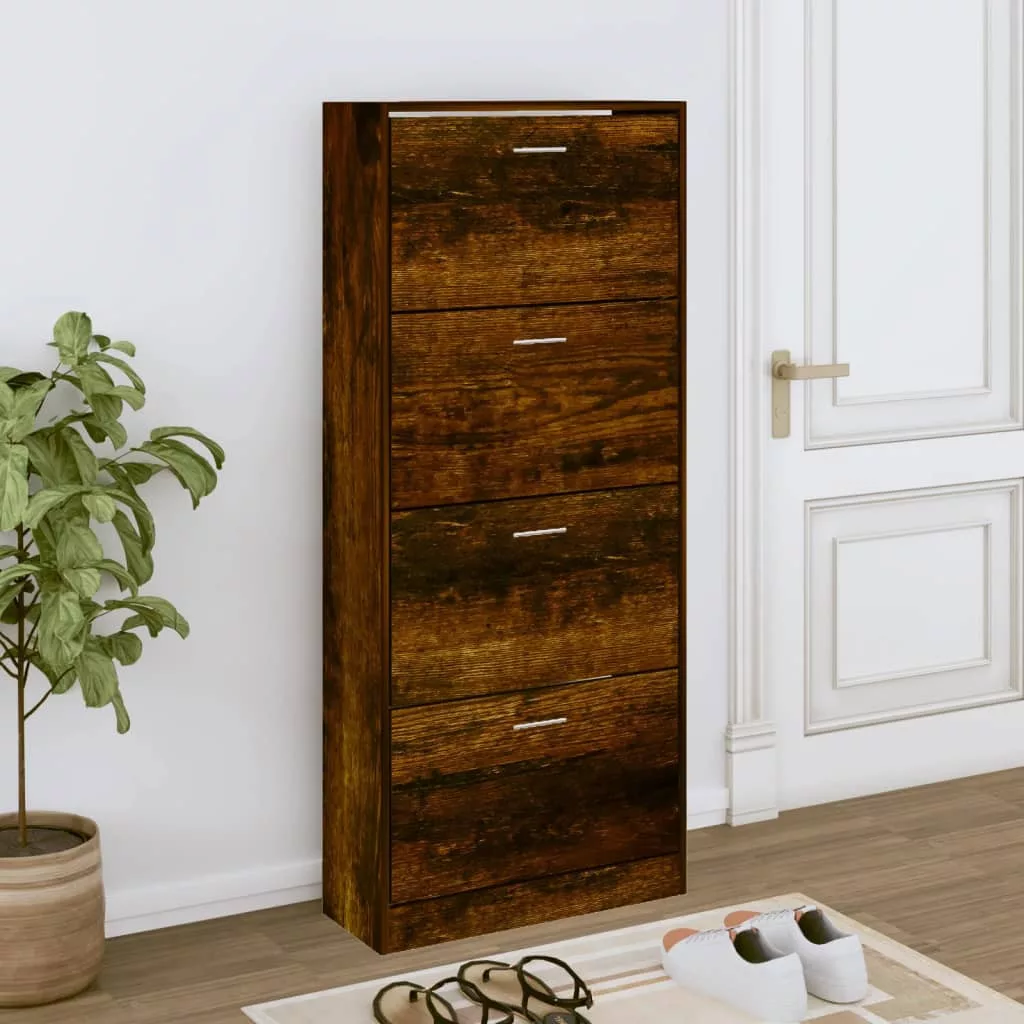Ez a modern és stílusos kialakítású cipőszekrény kiváló bútor a cipők szervezett tárolásához. Alkalmas bejárathoz, folyosóra, nappaliba, hálószobába vagy bárhova, ahova helyezni szeretné. Tartós anyag: A szerelt fa kivételes minőségű, sima felületű, szilárd, stabil, és ellenáll a nedvességnek.Bőséges tárolóhely: Ez a cipőtartó 4 fiókkal rendelkezik, amelyek elegendő helyet biztosítanak a cipők kéznél tartásához és jól rendezetten tartásához.Lehúzható fiókos kialakítás: A lehúzható fiókos kialakításnak köszönhetően ez a cipőtároló szekrény könnyen nyitható és zárható. Megjegyzés:Az egyszerű összeszerelés érdekében minden termékhez mellékelünk összeszerelési útmutatót. Figyelem:A dőlés megakadályozása érdekében a terméket a mellékelt tartóelem segítségével rögzíteni kell a falhoz
