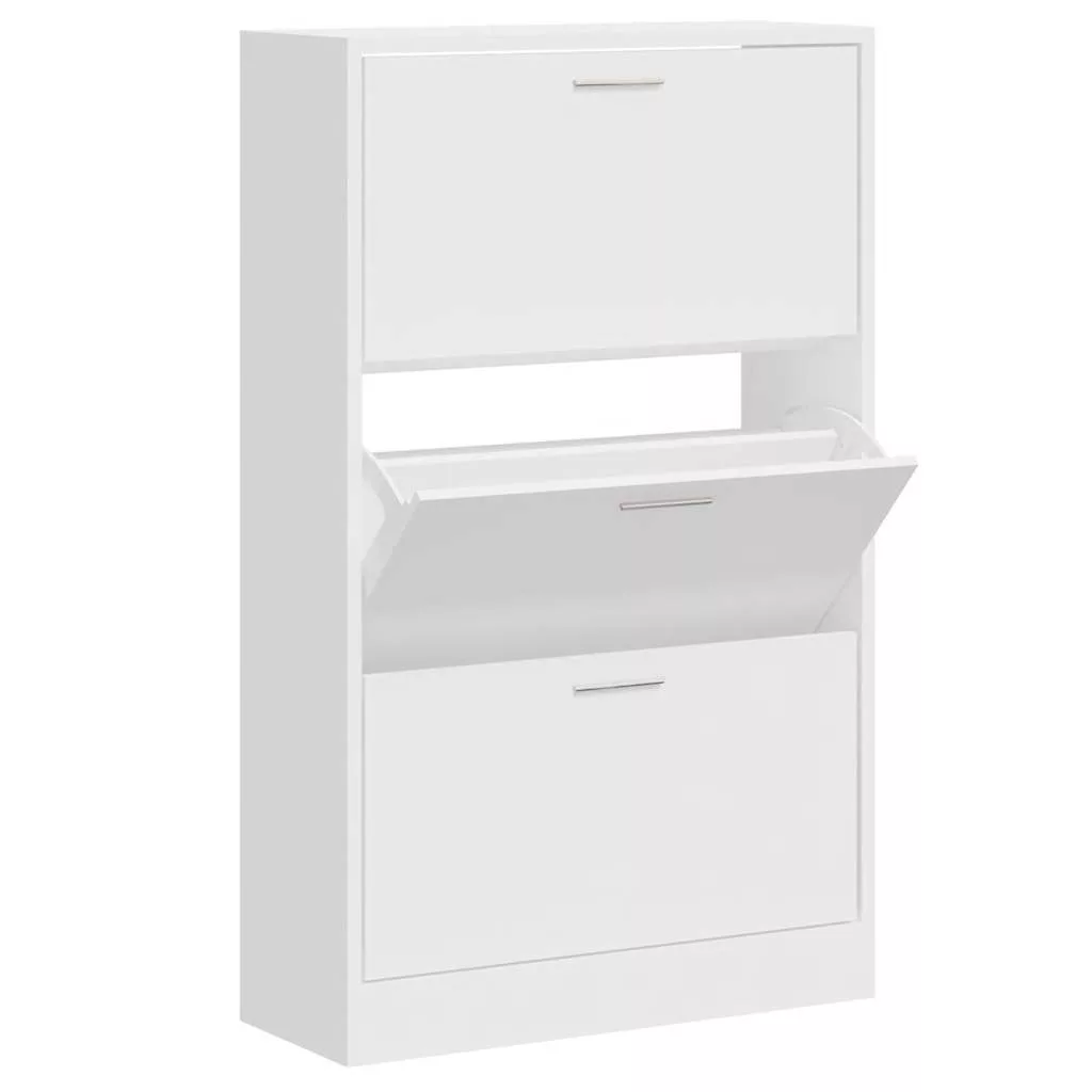 Ez a modern és stílusos kialakítású cipőszekrény kiváló bútor a cipők szervezett tárolásához. Alkalmas bejárathoz, folyosóra, nappaliba, hálószobába vagy bárhova, ahova helyezni szeretné. Tartós anyag: A szerelt fa kivételes minőségű, sima felületű, szilárd, stabil, és ellenáll a nedvességnek.Bőséges tárolóhely: Ez a cipőtartó 3 fiókkal rendelkezik, amelyek elegendő helyet biztosítanak a cipők kéznél tartásához és jól rendezetten tartásához.Lehúzható fiókos kialakítás: A lehúzható fiókos kialakításnak köszönhetően ez a cipőtároló szekrény könnyen nyitható és zárható. Megjegyzés:Az egyszerű összeszerelés érdekében minden termékhez mellékelünk összeszerelési útmutatót. Figyelem:A dőlés megakadályozása érdekében a terméket a mellékelt tartóelem segítségével rögzíteni kell a falhoz