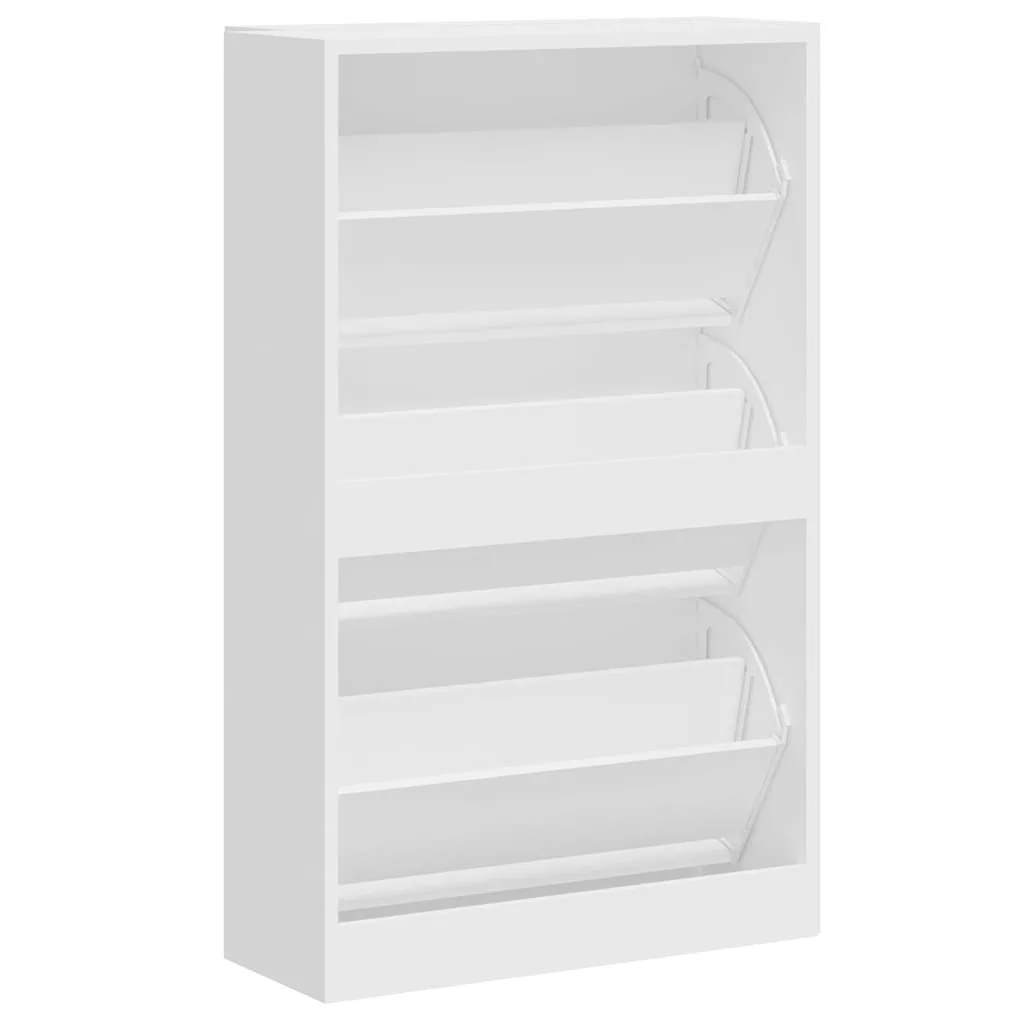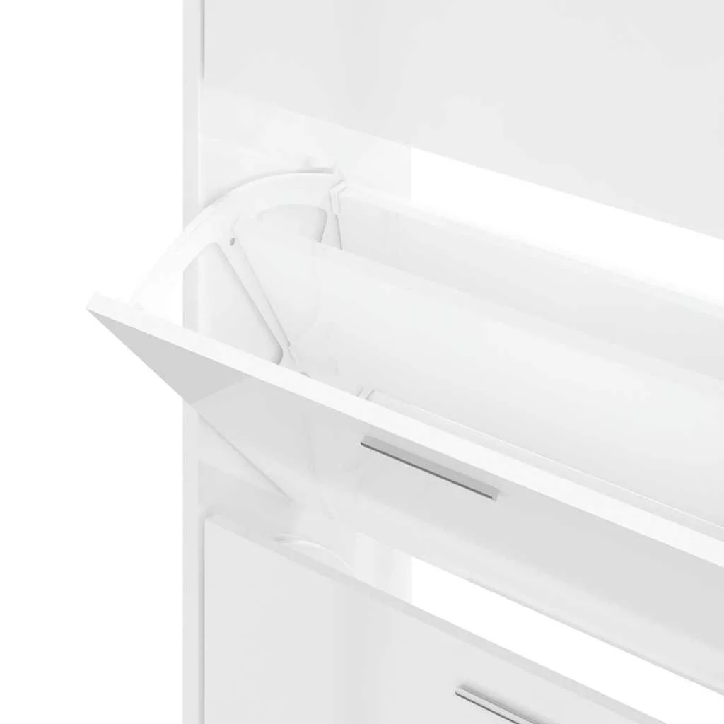magasfényű fehér szerelt fa cipőszekrény 63x24x103 cm