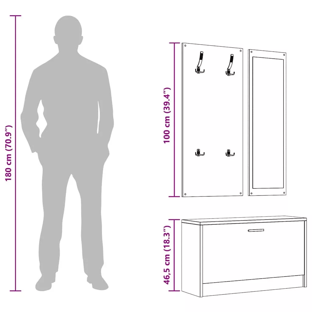 Ez a 3 az 1-ben cipőszekrény szett egy stílusos cipős szekrényből, egy falra szerelhető tükörből és egy ruhafogasból áll, számtalan tárolási megoldást kínálva. Erős anyag: A szerelt fa kivételes minőségű, sima felületű, szilárd, stabil, és ellenáll a nedvességnek.Bőséges tárolóhely: A cipőszekrényben egy nagy rekesz található, középső válaszfallal a dolgok rendezett tárolására. Többé nem kell bosszankodnia amiatt, hogy cipők lepik el padlóját.Praktikus kialakítás: A fogas 4 erős akasztóval lett felszerelve a kabátok, táskák, sapkák, sálak és egyebek számára. A tükör elég nagy ahhoz, hogy megfelelően láthassa magát. Megjegyzés:Az egyszerű összeszerelés érdekében minden termékhez mellékelünk összeszerelési útmutatót.