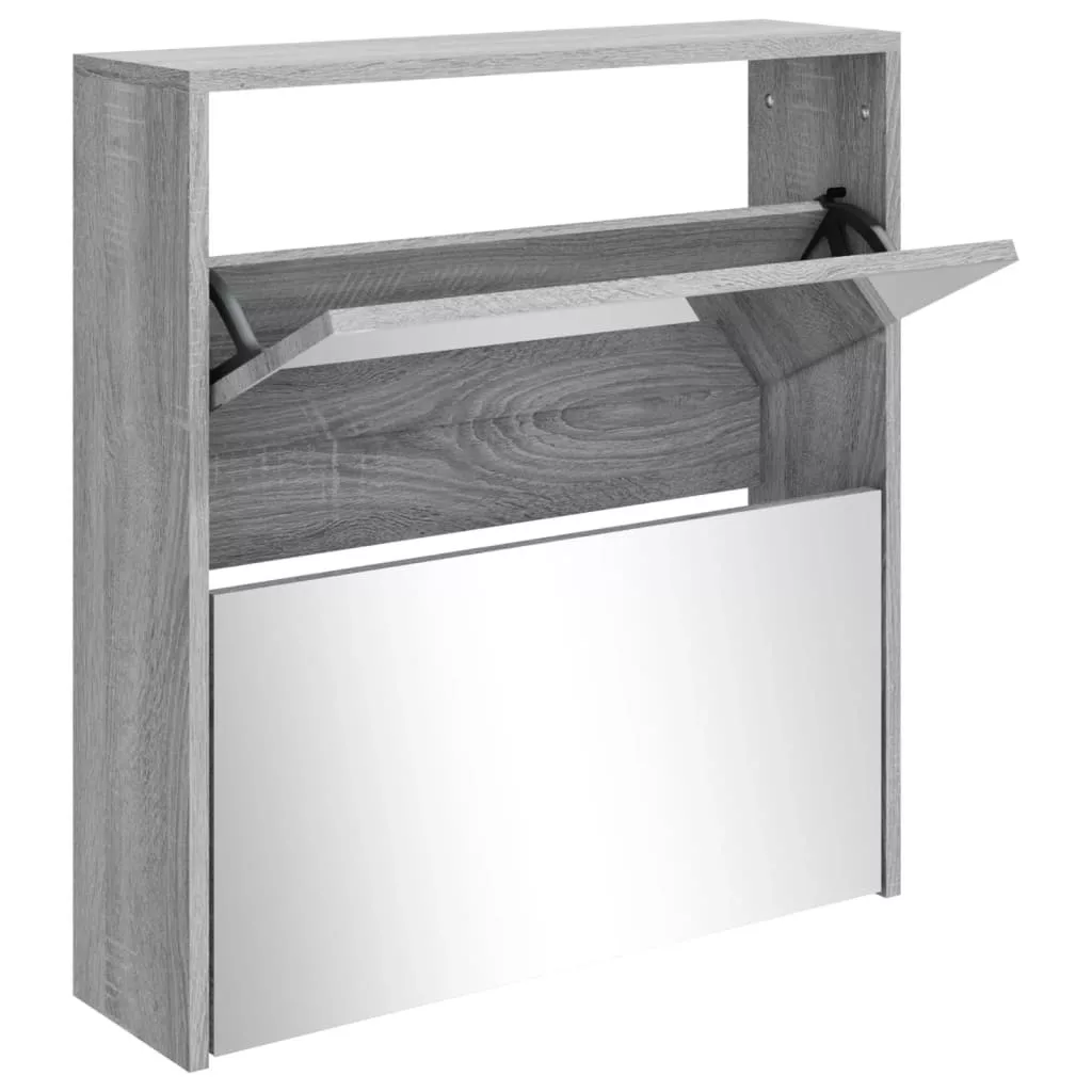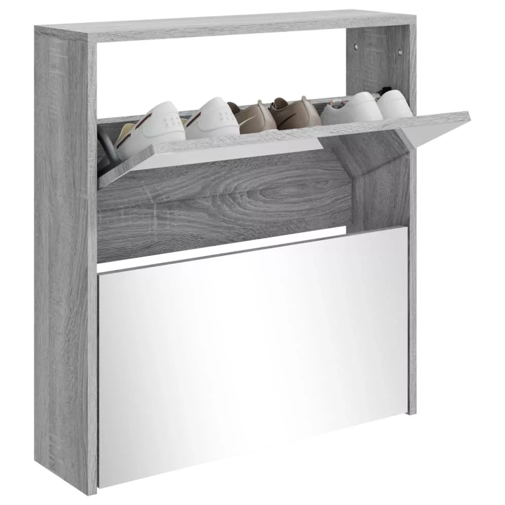 szürke sonoma 2 szintes cipőszekrény tükörrel 63 x 17 x 67 cm