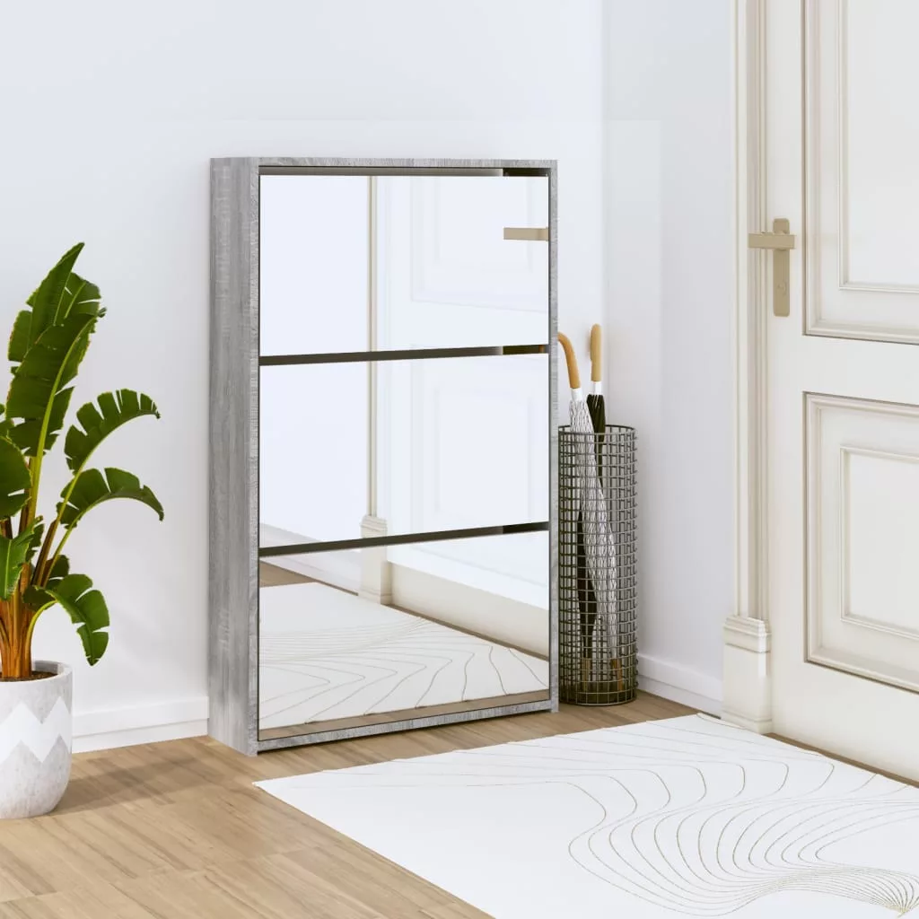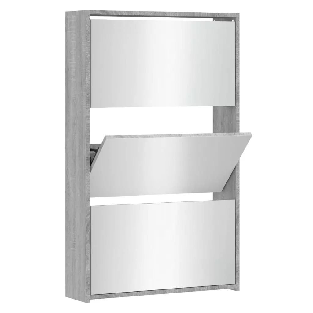 szürke sonoma 3 szintes cipőszekrény tükörrel 63x17x102,5 cm
