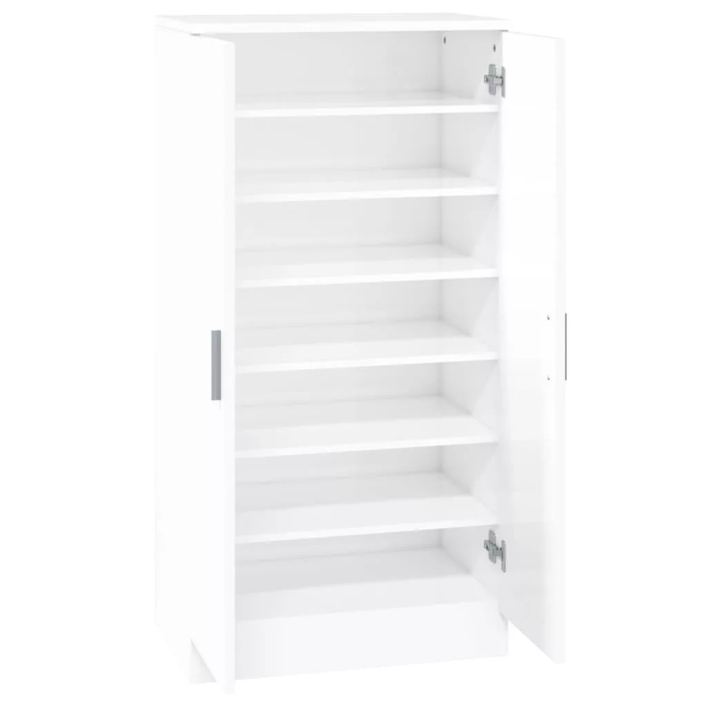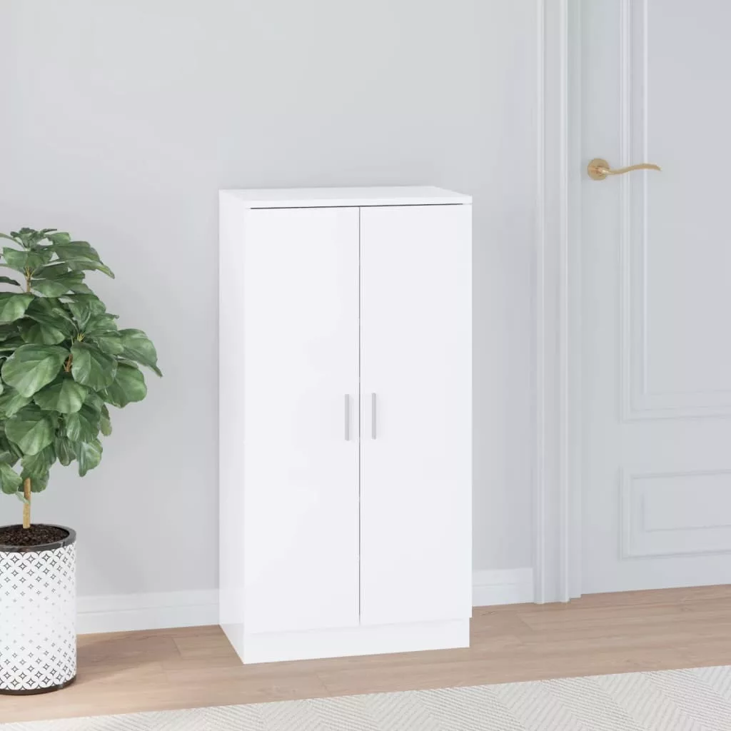 magasfényű fehér szerelt fa cipőszekrény 55 x 35 x 108 cm