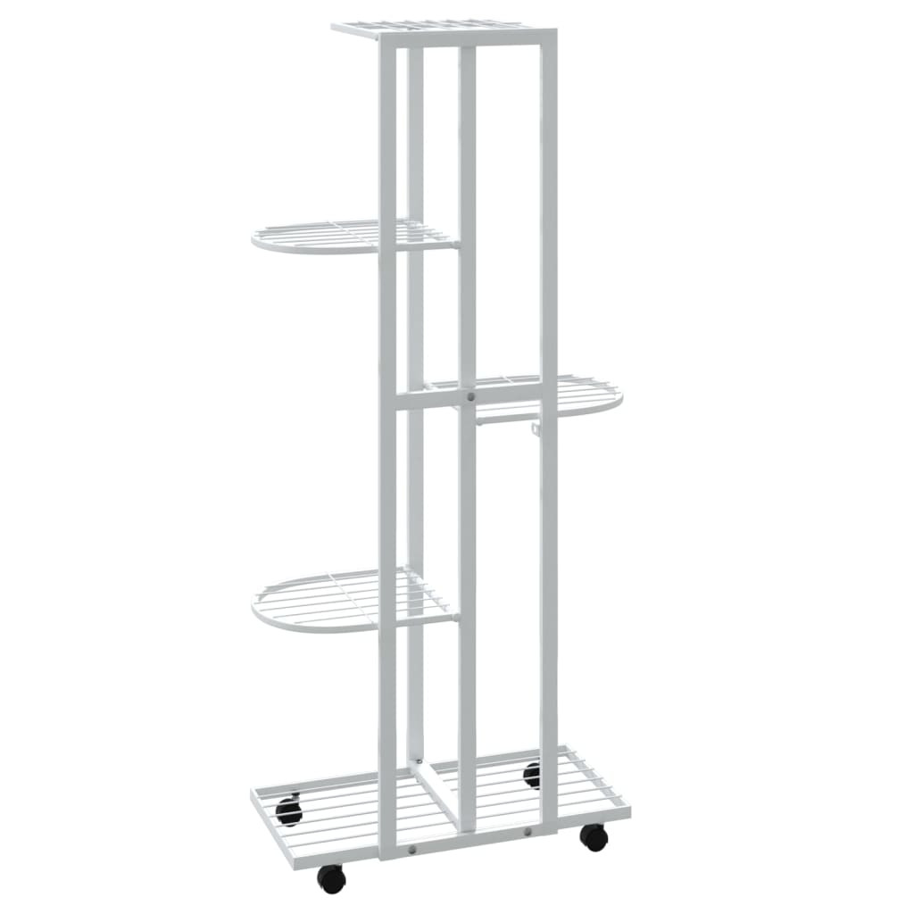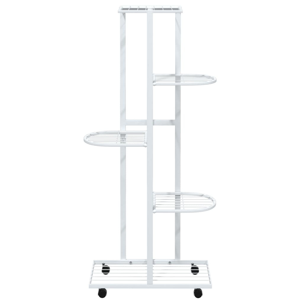 5 szintes fehér vas virágtartó állvány kerekekkel 44x23x100 cm