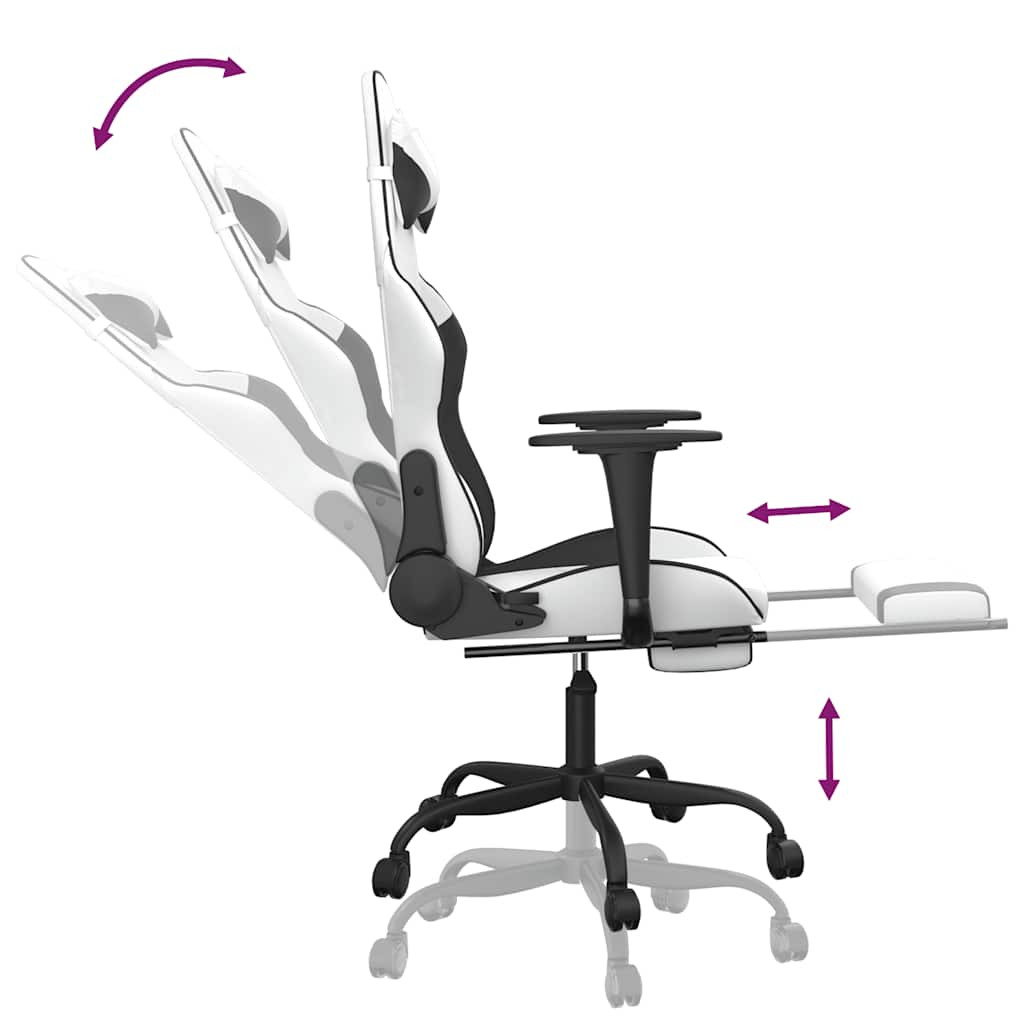 Üljön ezen az egyedülálló játékszéken és élvezze a kényelmes játékélményét! Tartós műbőr: A prémium minőségű műbőr rendkívül tartós anyag. Foltálló, így nedves ruhával könnyen tisztítható. A sima felület fényűző megjelenésű, és a valódi bőr szépségét biztosítja.Masszázs funkció: A derékpárnában található masszázspont hatékonyan enyhíti a fáradtságot, és ellazítja a munkahelyen.Állítható háttámla és magasság: A fotel dönthető, így saját igénye szerint állíthatja be a háttámlát és a lábtartót. A kar segítségével tetszés szerint állíthatja be az ülés magasságát.Kényelmes kialakítás: A 360 fokban forgatható kivitel széles mozgástartományt biztosít. Ezenkívül a görgőkkel kényelmesen mozgatható.Masszív és stabil váz: A fémből és furnérlemezből készült vázak erős szerkezetet és stabilitást biztosítanak. Megjegyzés:Az egyszerű összeszerelés érdekében minden termékhez mellékelünk összeszerelési útmutatót.A termék USB-csatlakozóval rendelkezik, ám a hitelesített 5 V-os USB áramforrást a csomag nem tartalmazza. Ügyeljen a nyílt tűz és más erős hőforrások veszélyére a termék közelében. Maximum 110 kg ülésenként. Ez a termék DC 5V-ról működik, de a tanúsított 5V-os USB-tápforrást nem tartalmazza. A magasabb feszültség túlmelegedést okozhat, ami a készülék károsodását, valamint a túlmelegedés és a tűz esetleges kockázatát okozhatja.