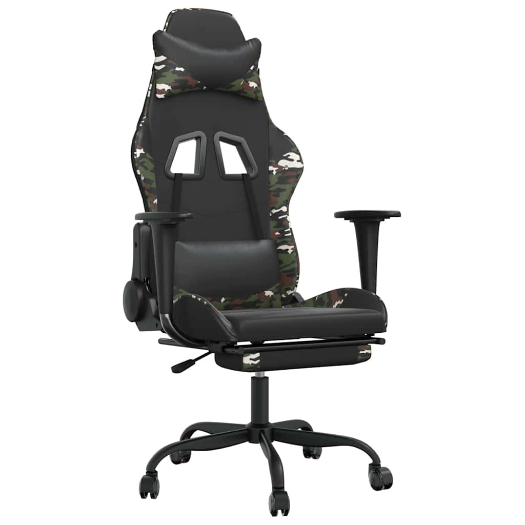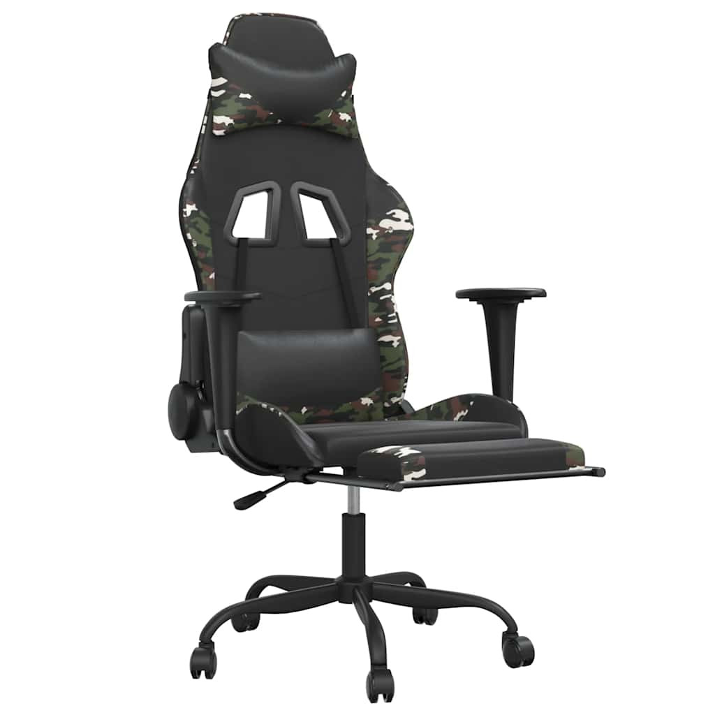 fekete és terepszínű műbőr masszázsjátékszék lábtartóval