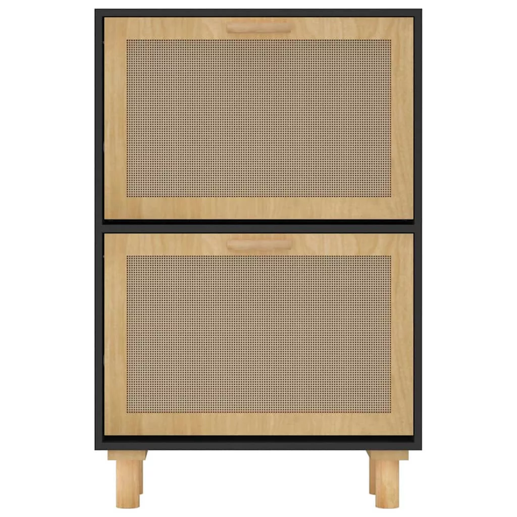 fekete szerelt fa és természetes rattan cipőszekrény 52x25x80cm