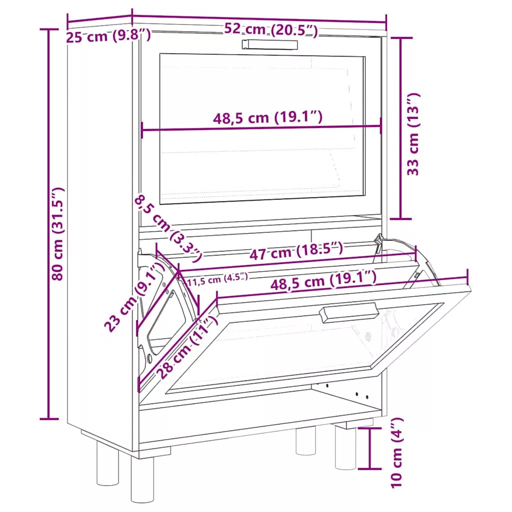 Ez a skandináv stílusú cipőszekrény kiváló bútor a cipők szervezett tárolásához. Alkalmas bejárathoz, folyosóra, nappaliba, hálószobába vagy bárhova, ahova helyezni szeretné. Tartós anyag: A szerelt fa kivételes minőségű, sima felületű, szilárd, stabil, és ellenáll a nedvességnek.Bőséges tárolóhely: Ez a cipőtartó 2 fiókkal rendelkezik, amelyek elegendő helyet biztosítanak a cipők kéznél tartásához és jól rendezetten tartásához. Ezenkívül a fiókban található természetes rattan szövésű dizájn extra szépséggel ruházza fel.Lehúzható fiókos kialakítás: A lehúzható fiókos kialakításnak köszönhetően ez a cipőtároló szekrény könnyen nyitható és zárható. Megjegyzés:Az egyszerű összeszerelés érdekében minden termékhez mellékelünk összeszerelési útmutatót. Figyelem:A dőlés megakadályozása érdekében a terméket a mellékelt tartóelem segítségével rögzíteni kell a falhoz
