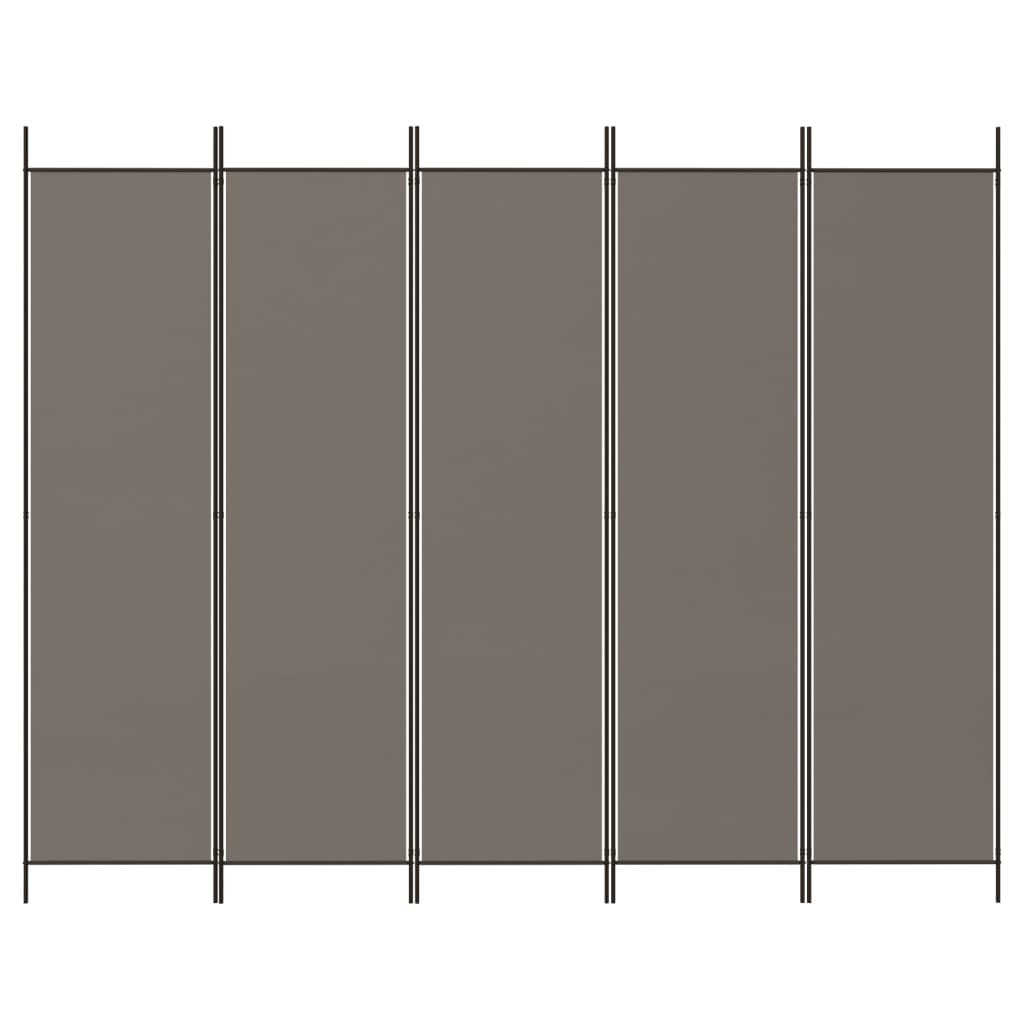 5 paneles antracitszürke szövet térelválasztó 250 x 220 cm