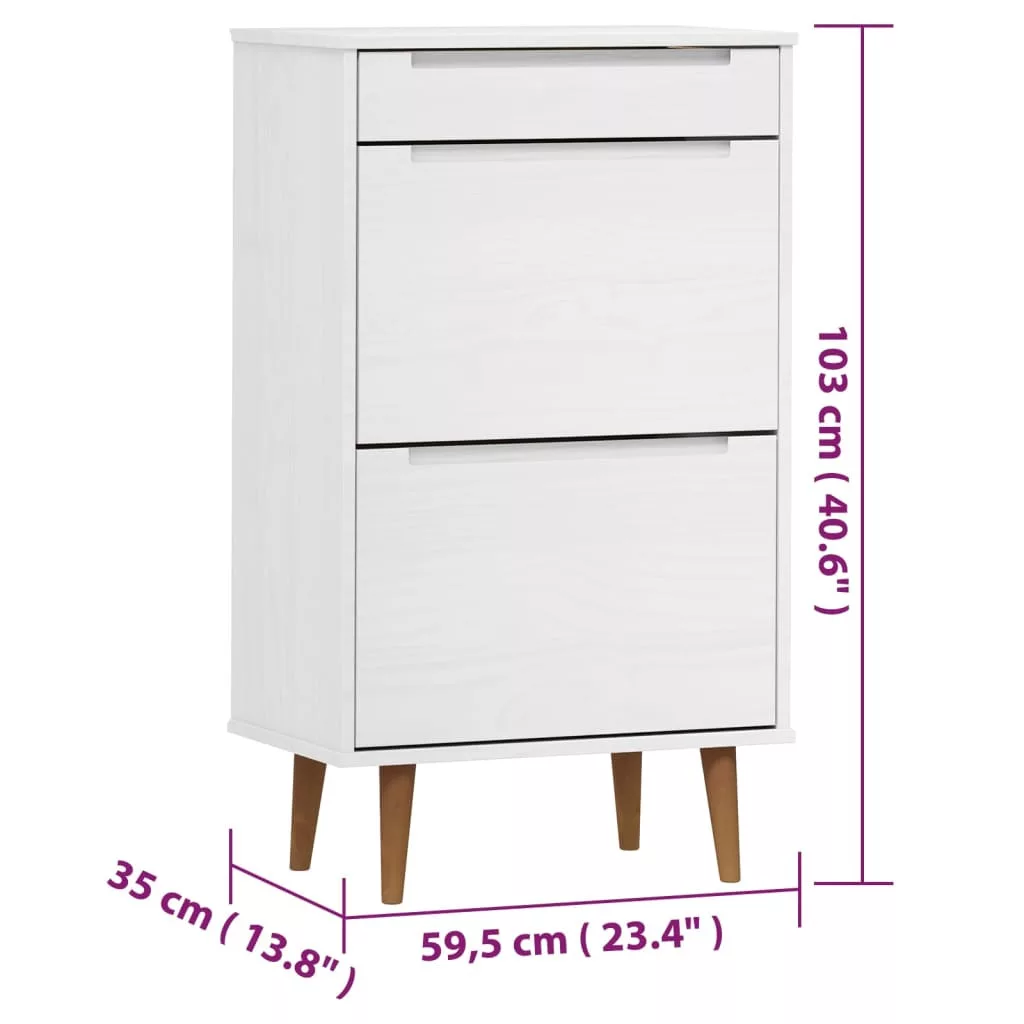 MOLDE fehér tömör fenyőfa cipőszekrény 59,5 x 35 x 103 cm