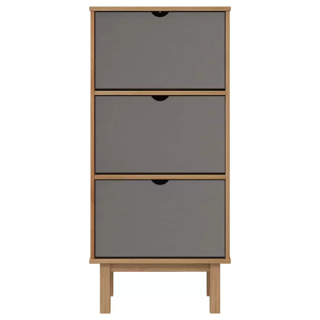 OTTA barna és szürke tömör fenyőfa cipőszekrény 3 fiókkal