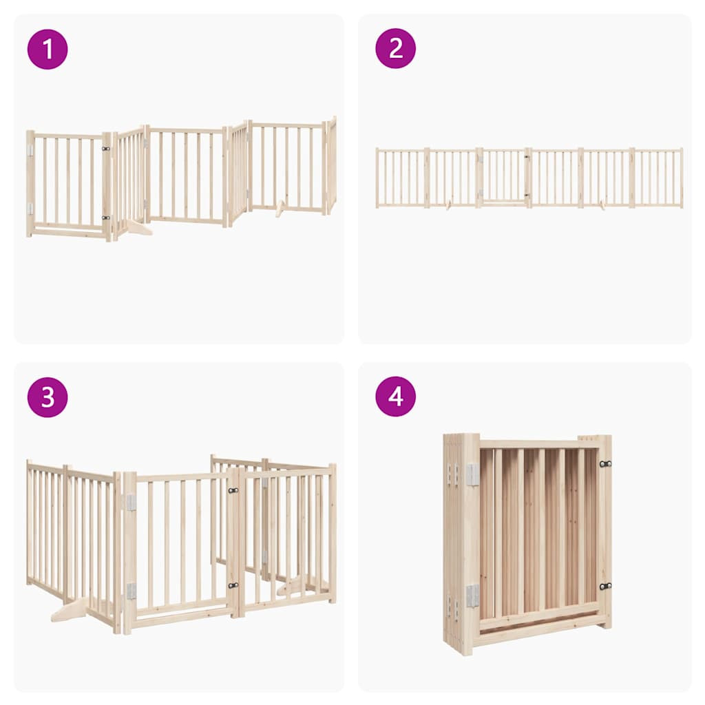tömör fenyőfa 6 paneles összecsukható kutyakapu ajtóval 300 cm