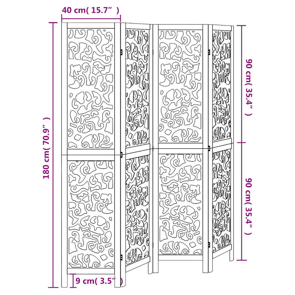 Vigyen eleganciát és szemet gyönyörködtető dekorációt a terébe ezzel a bájos térelválasztóval. Tartós és könnyen tisztítható: A térelválasztó szerelt fából készült, így könnyen tisztítható és tartós.Stabil váz: A tömör császárfa váz szilárdságot és stabilitást biztosít. A tömör császárfa egy gyönyörű természetes anyag. A császárfa rendkívül ellenálló a rovarokkal és a korhadással szemben.Rugalmas és könnyen összecsukható: Minden térelválasztó 3 fémpánttal, a felső és alsó panelek pedig rejtett, 2 az 1-ben zsanérokkal lettek összekötve. Így a térelválasztó panel a helytakarékosság érdekében könnyen összecsukható bizonyos mértékig, az Ön igényei szerint.Többcélú: A térelválasztó kiválóan alkalmas arra, hogy privát teret alakítson ki hálószobájában, nappalijában, irodájában, és más belső terekben. Az ablak elé is elhelyezheti, hogy megelőzze az intenzív napfény beáramlását.Mutatós megjelenés: Ez a kifinomult megjelenésű, összecsukható térelválasztó karakteres megjelenést és díszítést kölcsönöz a térnek. Figyelem:Csak beltéri használatra.