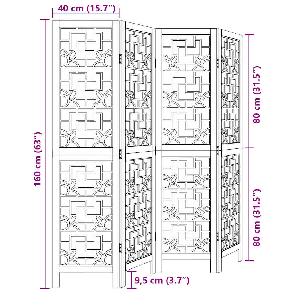 Vigyen eleganciát és szemet gyönyörködtető dekorációt a terébe ezzel a bájos térelválasztóval. Tartós és könnyen tisztítható: A térelválasztó szerelt fából készült, így könnyen tisztítható és tartós. Stabil váz: A tömör császárfa váz szilárdságot és stabilitást biztosít. A tömör császárfa egy gyönyörű természetes anyag. A császárfa rendkívül ellenálló a rovarokkal és a korhadással szemben. Rugalmas és könnyen összecsukható: Minden térelválasztó 3 fémpánttal, a felső és alsó panelek pedig rejtett, 2 az 1-ben zsanérokkal lettek összekötve. Így a térelválasztó panel a helytakarékosság érdekében könnyen összecsukható bizonyos mértékig, az Ön igényei szerint. Többcélú: A térelválasztó kiválóan alkalmas arra, hogy privát teret alakítson ki hálószobájában, nappalijában, irodájában, és más belső terekben. Az ablak elé is elhelyezheti, hogy megelőzze az intenzív napfény beáramlását. Figyelem:Csak beltéri használatra.