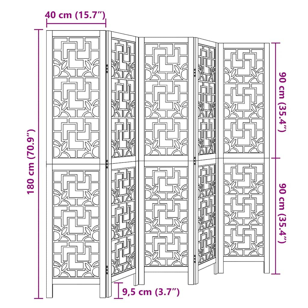 Vigyen eleganciát és szemet gyönyörködtető dekorációt a terébe ezzel a bájos térelválasztóval. Tartós és könnyen tisztítható: A térelválasztó szerelt fából készült, így könnyen tisztítható és tartós. Stabil váz: A tömör császárfa váz szilárdságot és stabilitást biztosít. A tömör császárfa egy gyönyörű természetes anyag. A császárfa rendkívül ellenálló a rovarokkal és a korhadással szemben. Rugalmas és könnyen összecsukható: Minden térelválasztó 3 fémpánttal, a felső és alsó panelek pedig rejtett, 2 az 1-ben zsanérokkal lettek összekötve. Így a térelválasztó panel a helytakarékosság érdekében könnyen összecsukható bizonyos mértékig, az Ön igényei szerint. Többcélú: A térelválasztó kiválóan alkalmas arra, hogy privát teret alakítson ki hálószobájában, nappalijában, irodájában, és más belső terekben. Az ablak elé is elhelyezheti, hogy megelőzze az intenzív napfény beáramlását. Figyelem:Csak beltéri használatra.