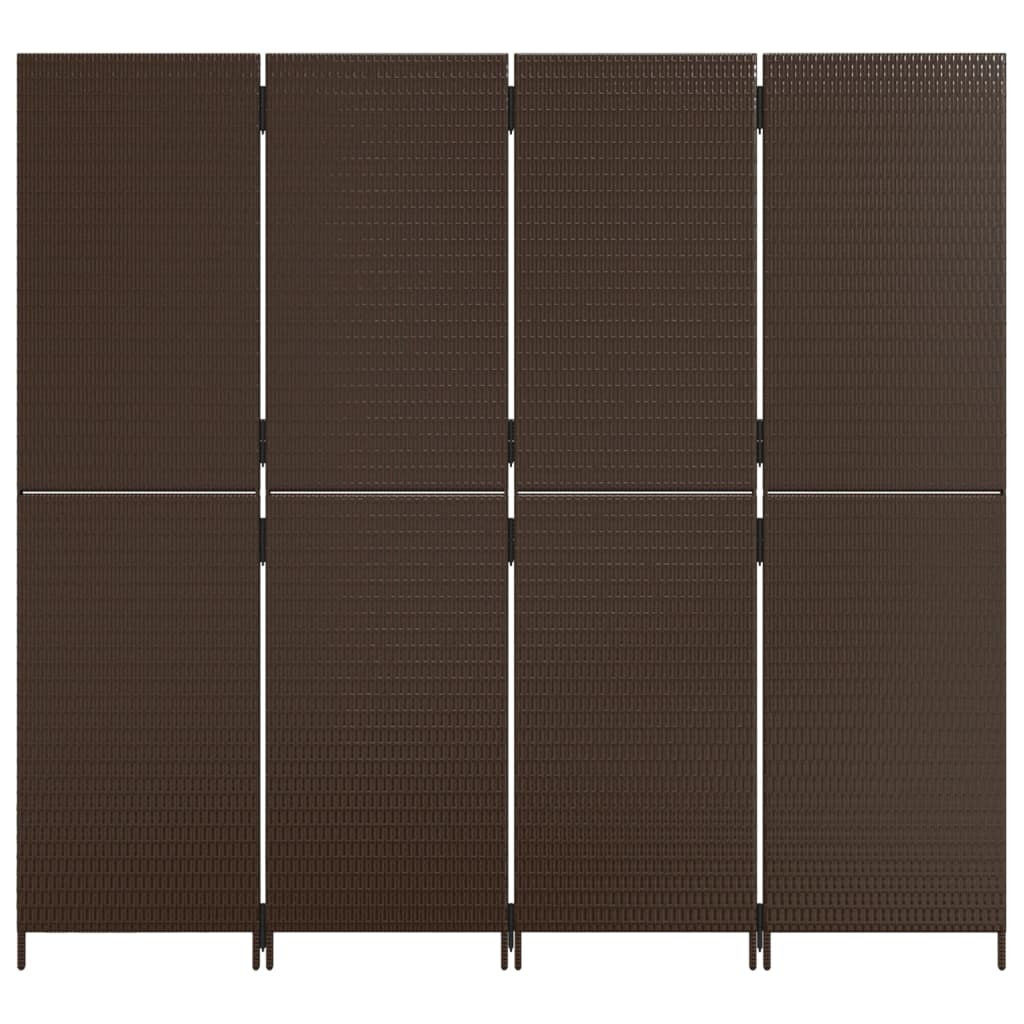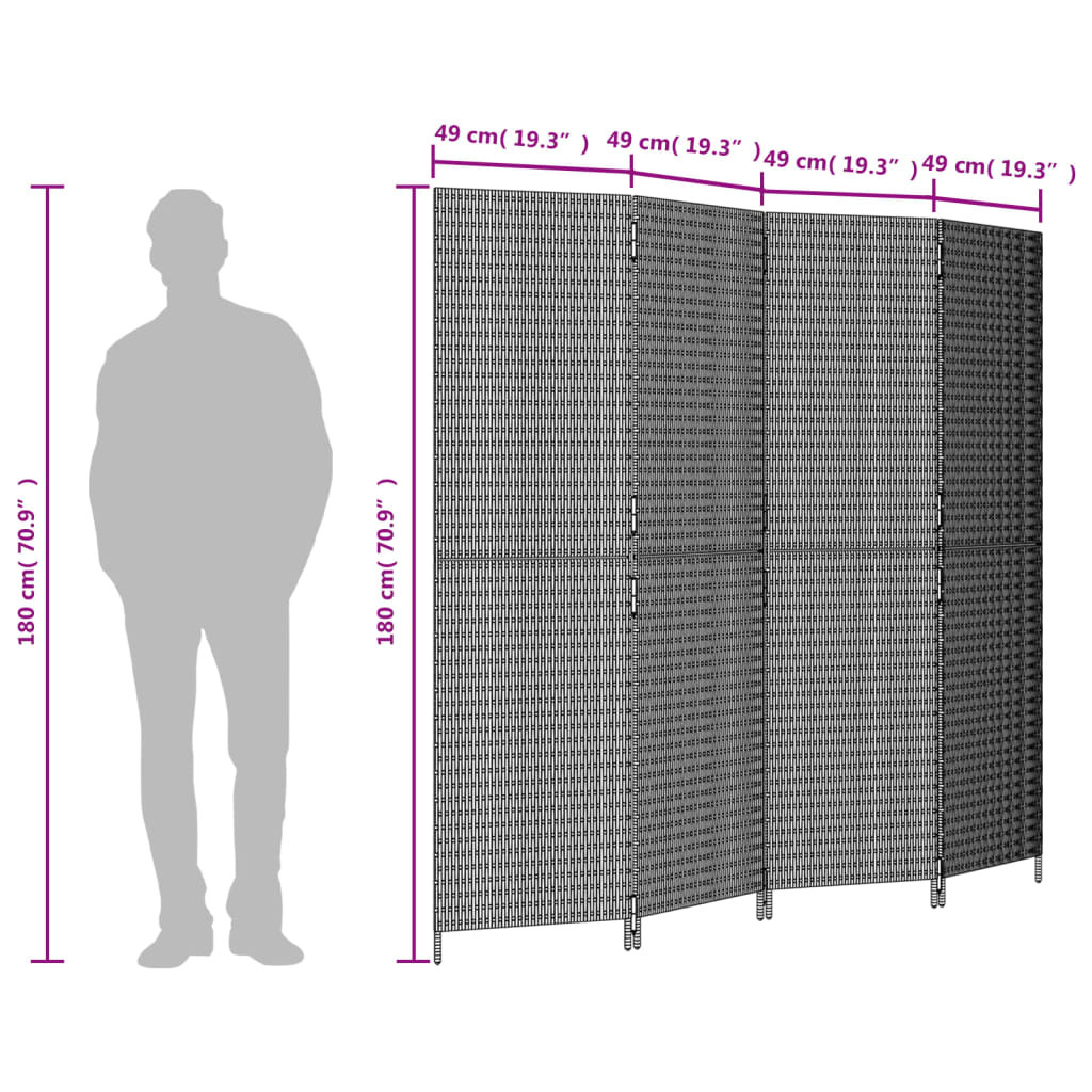 Ékesítse otthonát, és ossza fel terét ezzel a polyrattan térelválasztóval. Tartós és könnyen tisztítható: Minden belátásgátló panel időjárásálló és tartós polyrattan csíkokból lett szőve, így gyönyörű megjelenést biztosít, és könnyen tisztítható.Stabil váz: A porszórt acél váz erős szerkezetet és stabilitást biztosít.Rugalmas és könnyen összecsukható: Minden válaszfalat horganyzott zsanérok kötnek össze, és bizonyos mértékig a helytakarékosság érdekében igény szerint könnyedén összehajthatóak.Többcélú: A térelválasztó paraván bel- és kültéren egyaránt kiválóan alkalmas privát terek kialakítására, például a hálószobában, a nappaliban, az irodában stb. Az ablak elé is elhelyezheti, hogy megelőzze az intenzív napfény beáramlását. Fontos jegyzet:Ahhoz, hogy teljesen laposra lehessen hajtani, szét kell szerelni a horganyzott zsanérokat.