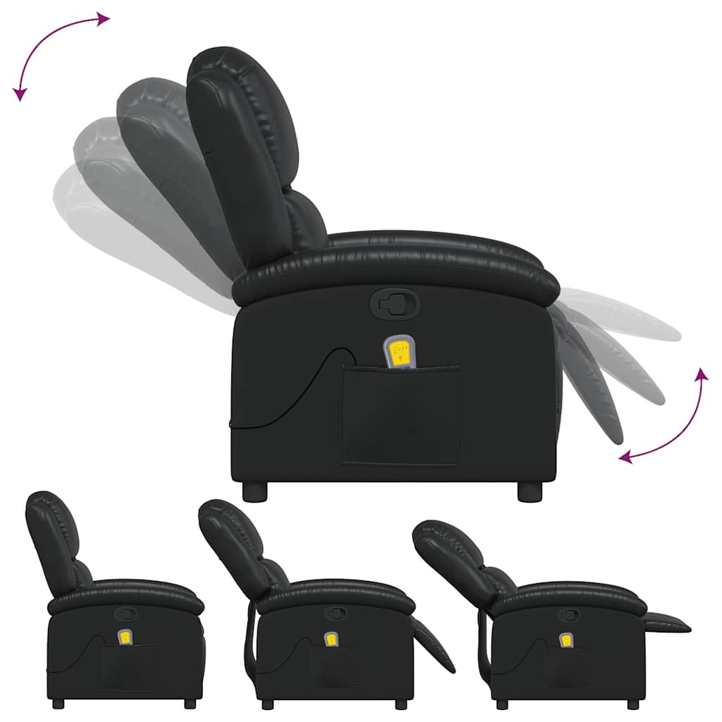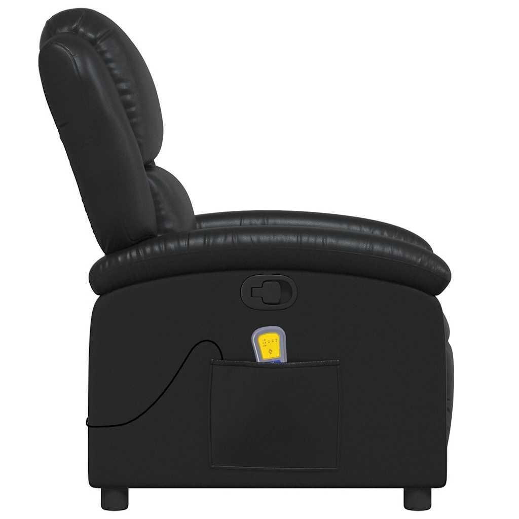 Dőljön hátra, és engedje el magát ebben a rendkívül kényelmes masszázsfotelben! Kézi dönthető funkció: Ennek a fotelnek a jobb oldalán van egy fogantyú. A lábtámaszt és a háttámlát a fogantyú egyszerű meghúzásával tetszőleges pozícióba állíthatja. Ez a funkció legfeljebb 135 fokos dőlést tesz lehetővé. Ezenkívül a háttámla a fogantyú egyszerű meghúzásával gyorsan visszaállítható az eredeti helyére.Rezgő funkció: A 6 masszázspont célzottabb masszást biztosít. Emellett a mellékelt kézi vezérlővel kiválaszthatja a különböző masszázsprogramokat. A masszázs funkciót az USB csatlakozó táplálja, de a hitelesített 5V-os USB tápforrást nem tartalmazza.Kényelmes ülésélmény: A vastagon párnázott ülés, a háttámla és a széles, műbőrrel borított kartámasz kellemes érzést kelt, így ülve átölelve érezheti magát. A prémium műbőr rendkívül tartós anyag. Foltálló, így nedves ruhával könnyen tisztítható. A sima felület fényűző megjelenésű, és a valódi bőr szépségét biztosítja.Kényelmes oldalzseb: Ez a fotel egy oldalzsebbel lett ellátva a távirányító számára, vagy egyéb lényeges tárgyak elérhető közelségben tartásához.Masszív és stabil váz: A fából és fémből készült váz erős szerkezetet és stabilitást biztosít. Ez a dönthető karosszék kényelmes és tartós. Maximum 110 kg ülésenként. Ez a termék DC 5V-ról működik, de a tanúsított 5V-os USB-tápforrást nem tartalmazza. A magasabb feszültség túlmelegedést okozhat, ami a készülék károsodását, valamint a túlmelegedés és a tűz esetleges kockázatát okozhatja.