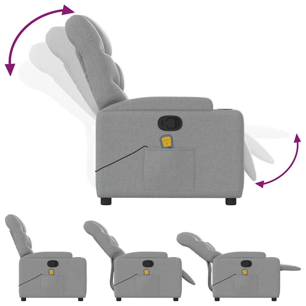 Dőljön hátra, és engedje el magát ebben a rendkívül kényelmes masszázsfotelben! Kézi dönthető funkció: Ennek a fotelnek a jobb oldalán van egy fogantyú. A lábtámaszt és a háttámlát a fogantyú egyszerű meghúzásával tetszőleges pozícióba állíthatja. Ez a funkció legfeljebb 135 fokos dőlést tesz lehetővé. Ezenkívül a háttámla a fogantyú egyszerű meghúzásával gyorsan visszaállítható az eredeti helyére.Rezgő funkció: A 6 masszázspont célzottabb masszást biztosít. Emellett a mellékelt kézi vezérlővel kiválaszthatja a különböző masszázsprogramokat. A masszázs funkciót az USB csatlakozó táplálja, de a hitelesített 5V-os USB tápforrást nem tartalmazza.Kényelmes ülésélmény: A vastagon párnázott ülés, a háttámla és a széles, szövetanyaggal borított kartámasz kellemes és meleg érzést kelt, így ülve átölelve érezheti magát. A szövet egyszerű és letisztult megjelenésű, valamint légáteresztő és tartós.Kényelmes pohártartók és oldalzseb: Ez a fotel két kényelmes pohártartóval rendelkezik az italok tárolására, valamint egy oldalsó zsebbel a távirányító számára, vagy a legfontosabb dolgai könnyen elérhető helyen tartásához.Masszív és stabil váz: A fából és fémből készült váz erős szerkezetet és stabilitást biztosít. Ez a dönthető karosszék kényelmes és tartós. Maximum 110 kg ülésenként. Ez a termék DC 5V-ról működik, de a tanúsított 5V-os USB-tápforrást nem tartalmazza. A magasabb feszültség túlmelegedést okozhat, ami a készülék károsodását, valamint a túlmelegedés és a tűz esetleges kockázatát okozhatja.