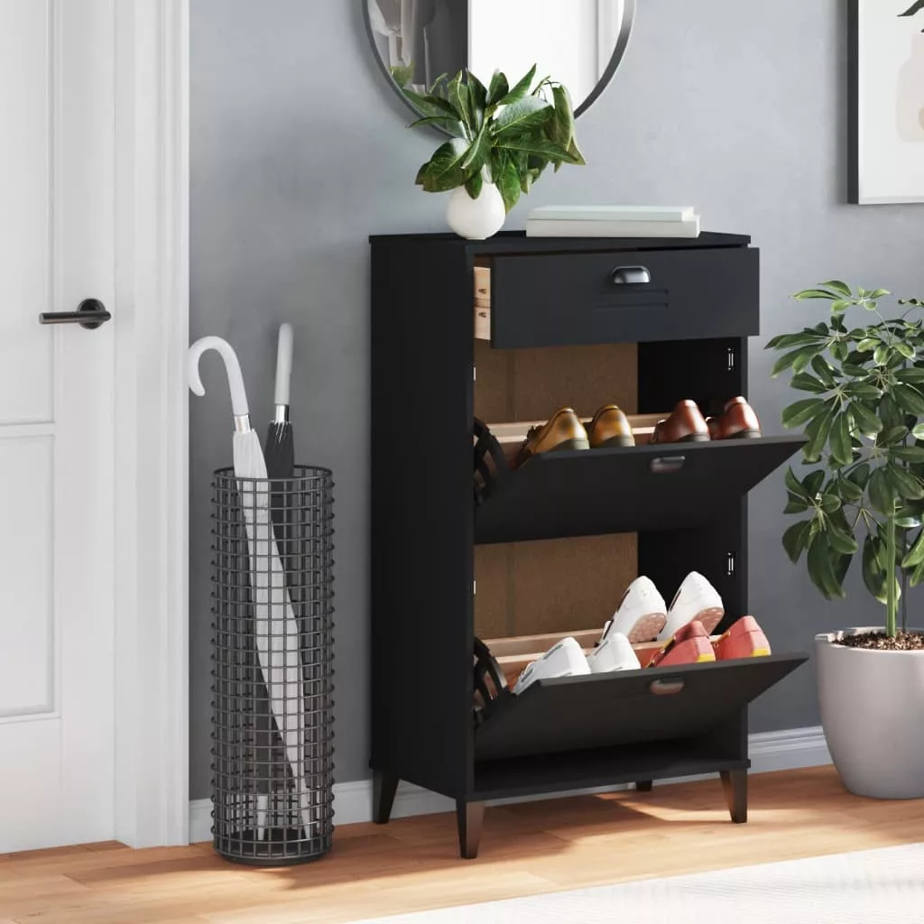 Ebben a cipőszekrényben hatékonyan tárolhatja cipőit, és praktikusan díszítheti vele otthonát. Tartós anyag: A szerelt fa kivételes minőségű, sima felületű, szilárd, stabil, és ellenáll a nedvességnek.Bőséges tárolóhely: A cipőszekrényben 2 kihajtható fiók található, mindegyikhez 2 sornyi hellyel, így bőséges helyet biztosít a cipők és egyebek rendezett tárolására.Masszív felső lap: A cipőszervező felső lapját használhatja kedvenc dísztárgyai elhelyezésére.Praktikus fogantyú: A cipőtartó fogantyúi megkönnyítik a szekrény kinyitását és zárását, miközben extra szépséget kölcsönöznek neki. Figyelem:A felborulás elkerülése érdekében ezt a terméket a mellékelt fali rögzítőeszközzel kell használni.