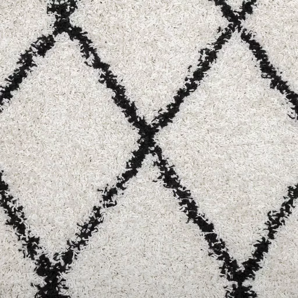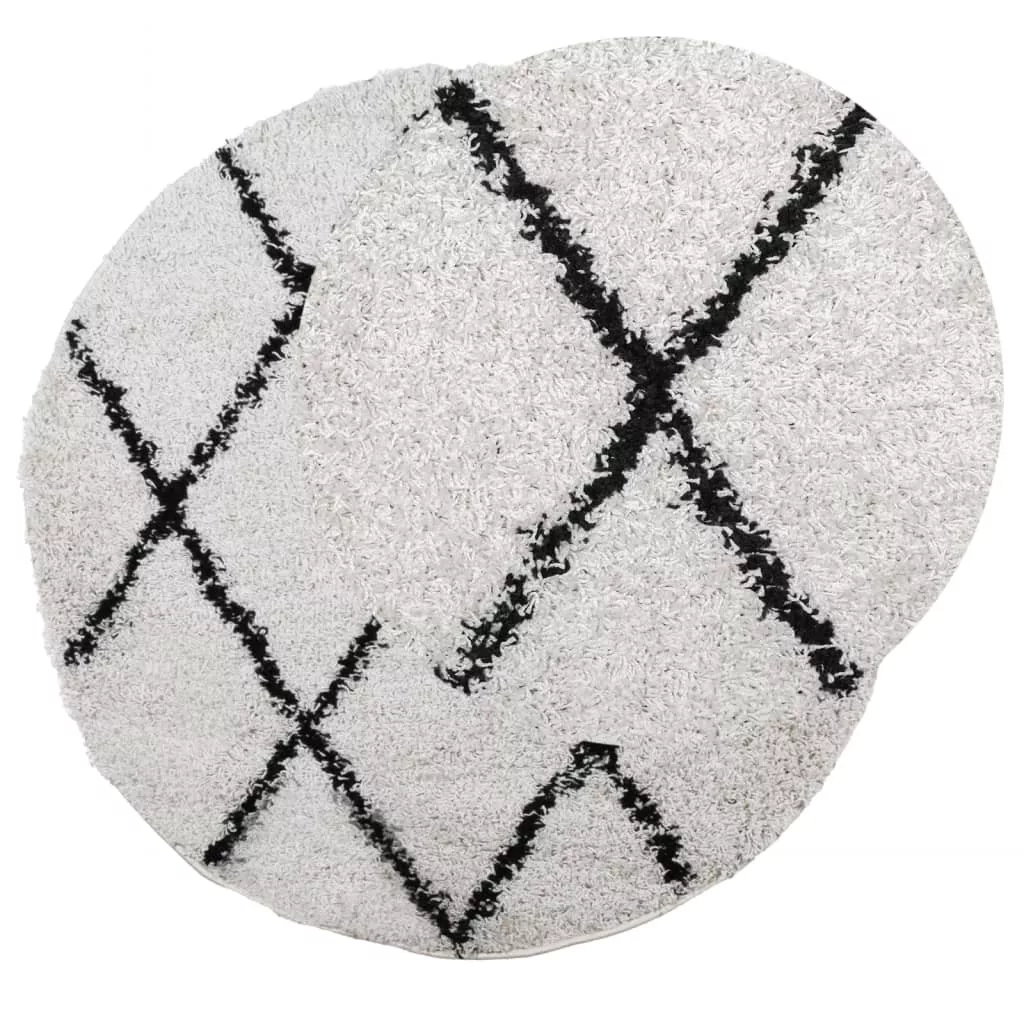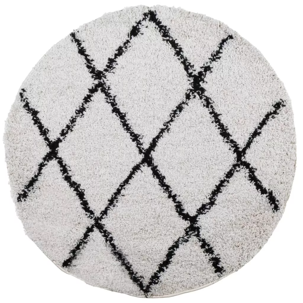 PAMPLONA krém-fekete magas szálú bolyhos modern szőnyeg Ø280 cm
