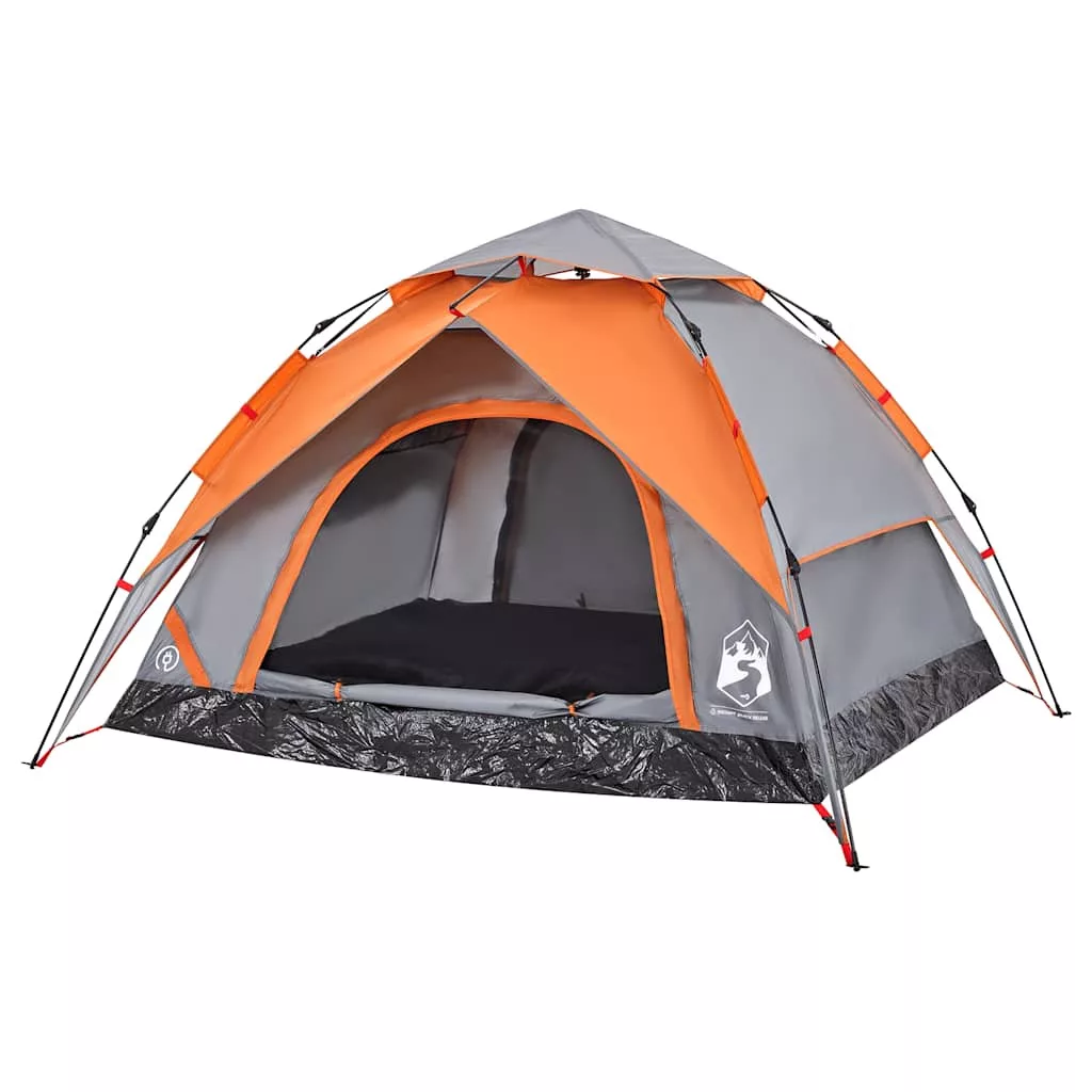 3 személyes szürke és narancs kupola alakú felugró kempingsátor