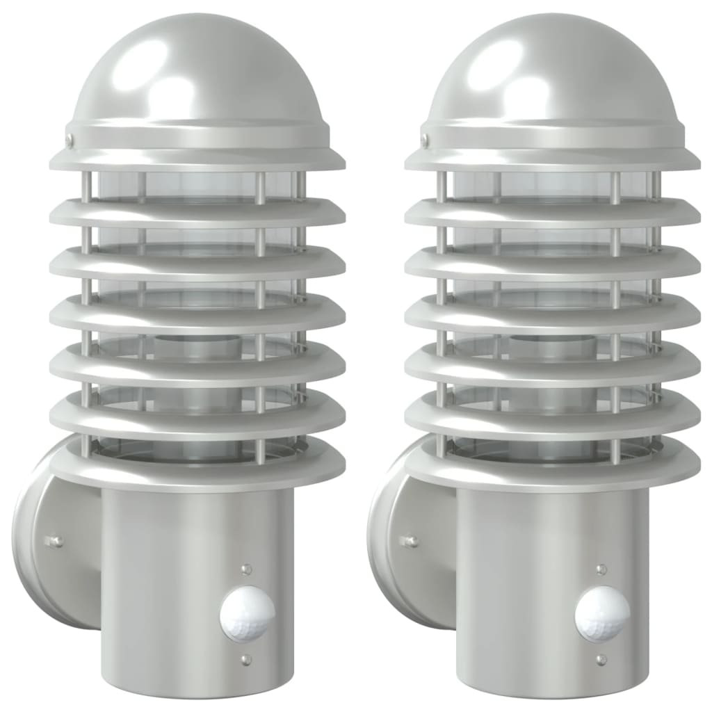 2 db ezüstszínű rozsdamentes acél kültéri érzékelős falilámpa