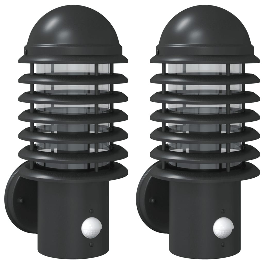 2 db fekete rozsdamentes acél kültéri érzékelős falilámpa