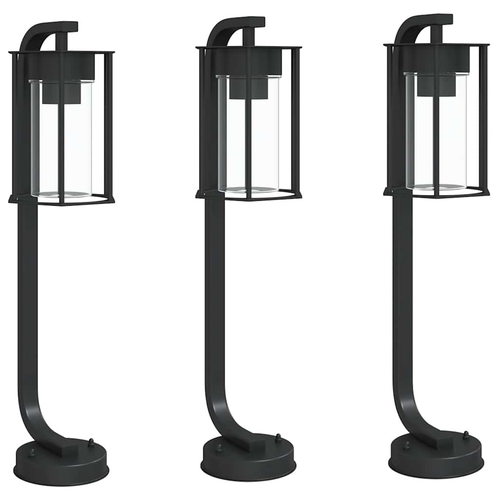 3 db fekete rozsdamentes acél kültéri állólámpa 60 cm