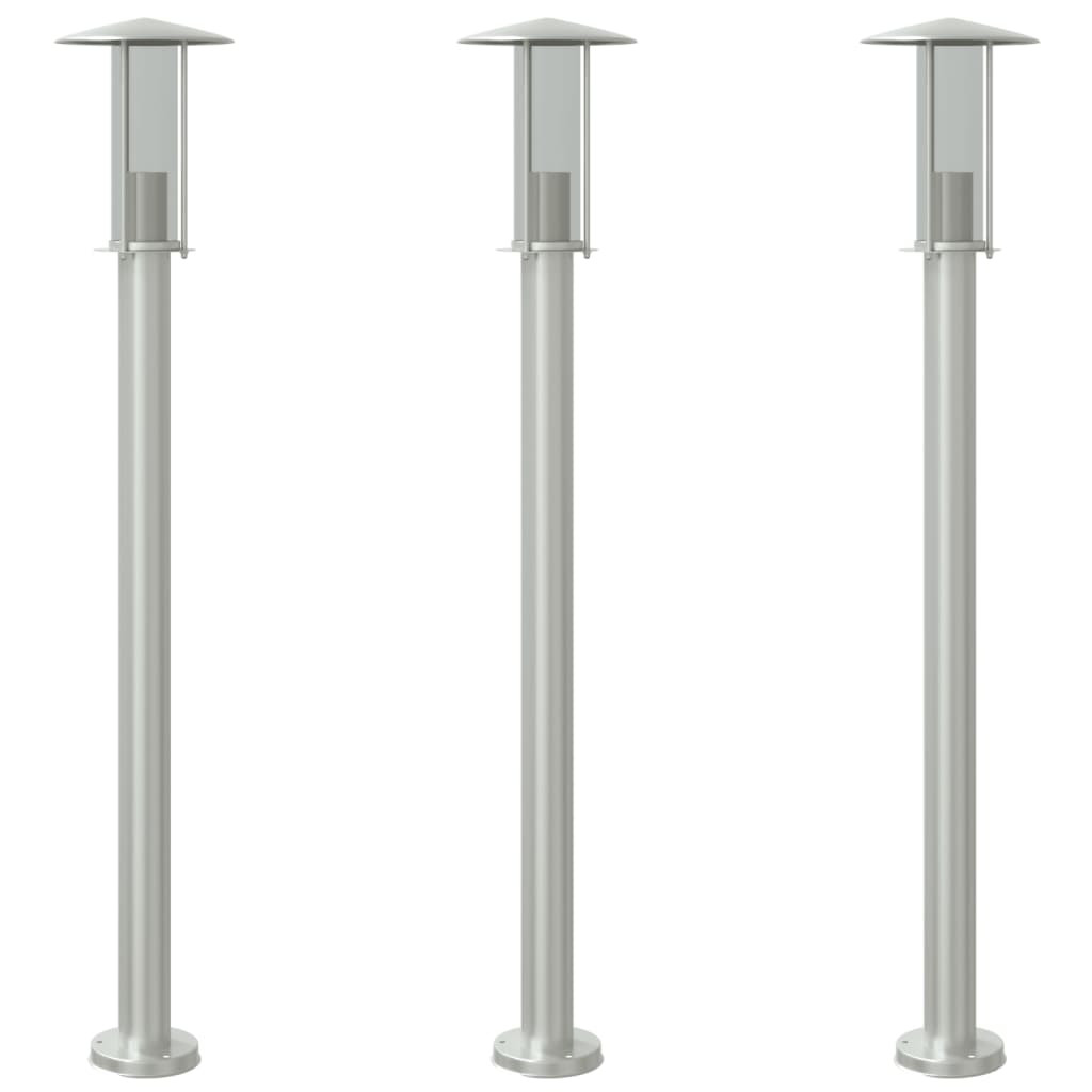 3 db ezüstszínű rozsdamentes acél kültéri állólámpa 100 cm