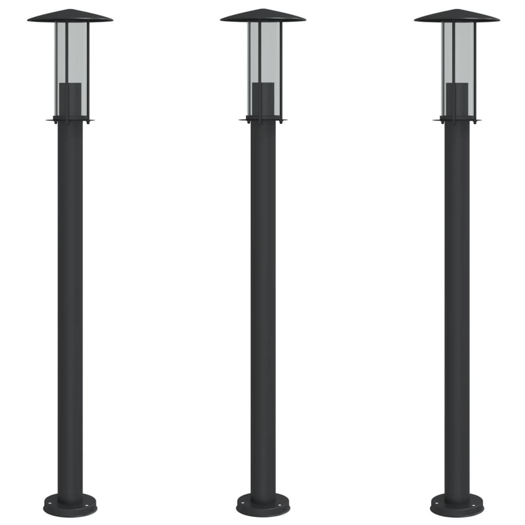 3 db fekete rozsdamentes acél kültéri állólámpa 100 cm