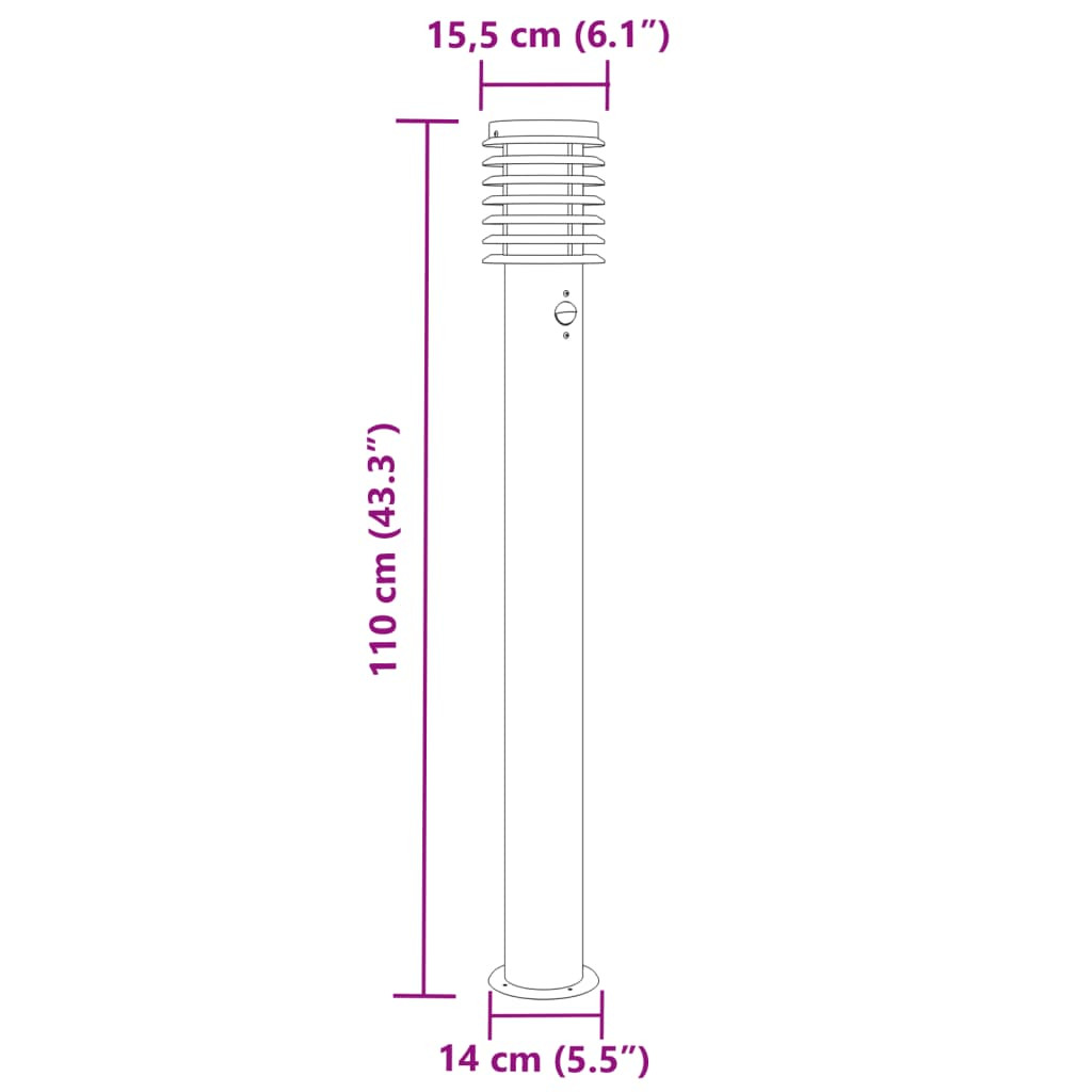 ezüst rozsdamentes acél kültéri állólámpa érzékelővel 110 cm
