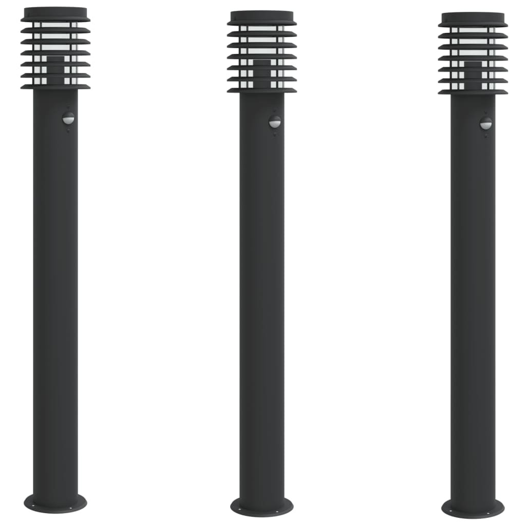 3 db rozsdamentes acél kültéri állólámpa érzékelővel 110 cm