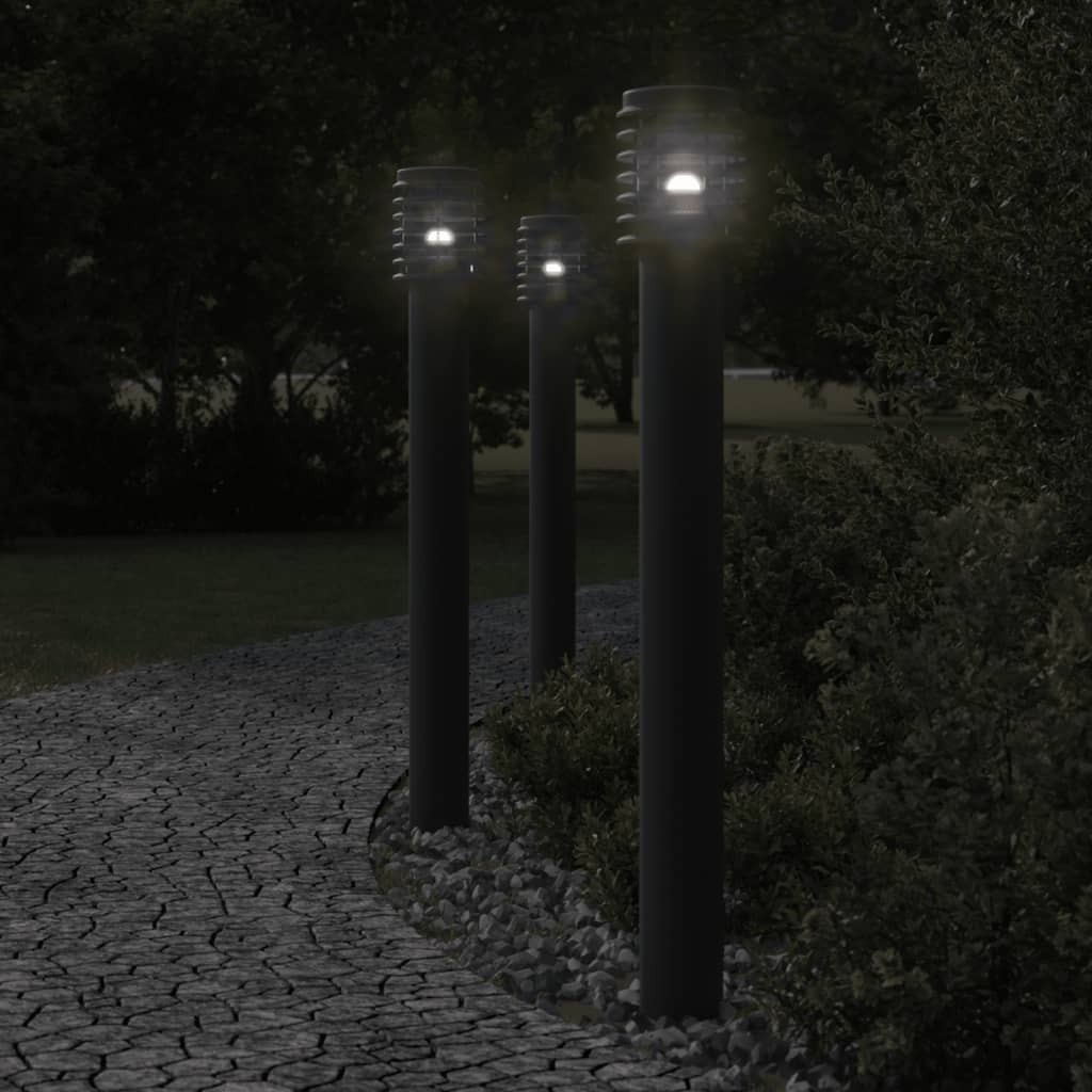 3 db fekete rozsdamentes acél kültéri állólámpa aljzattal 110cm