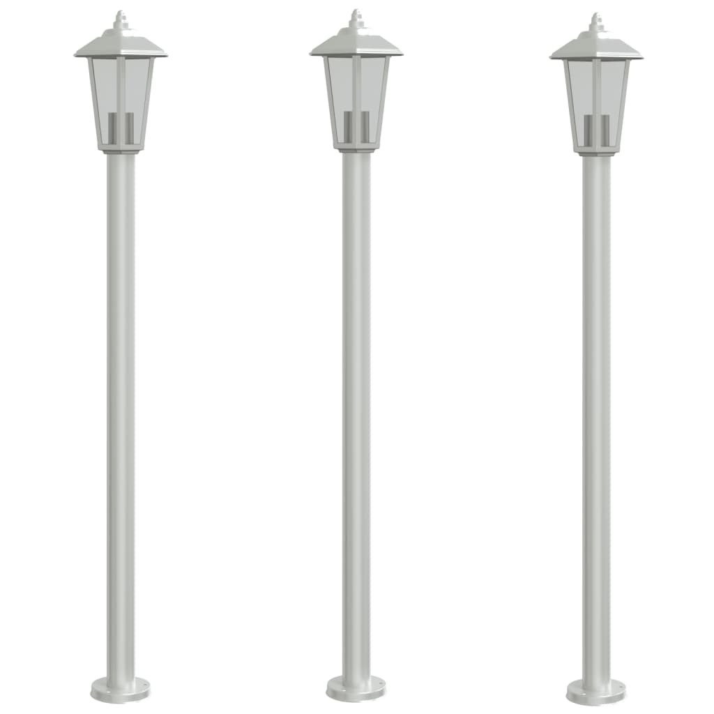 3 db ezüstszínű rozsdamentes acél kültéri állólámpa 120 cm