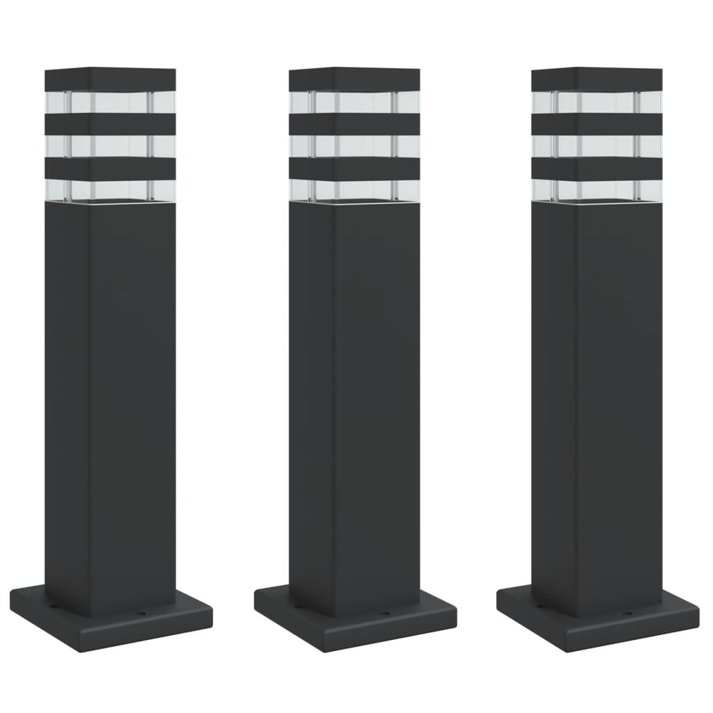 3 db fekete alumínium kültéri állólámpa 50 cm